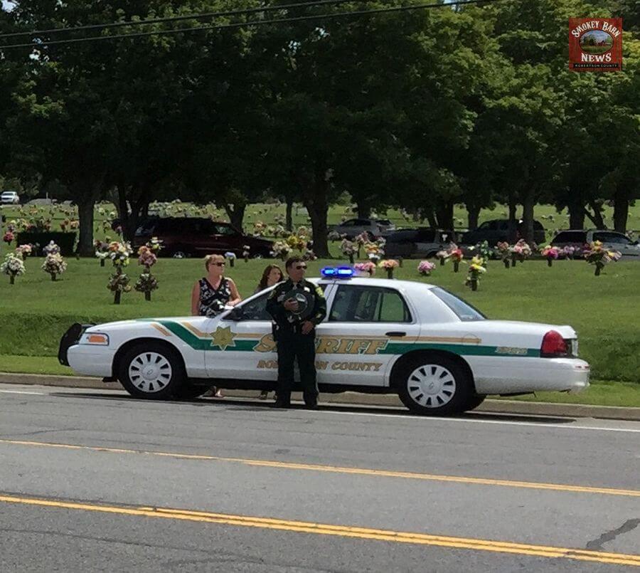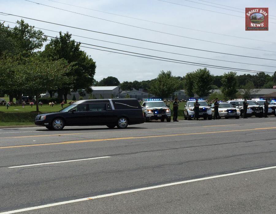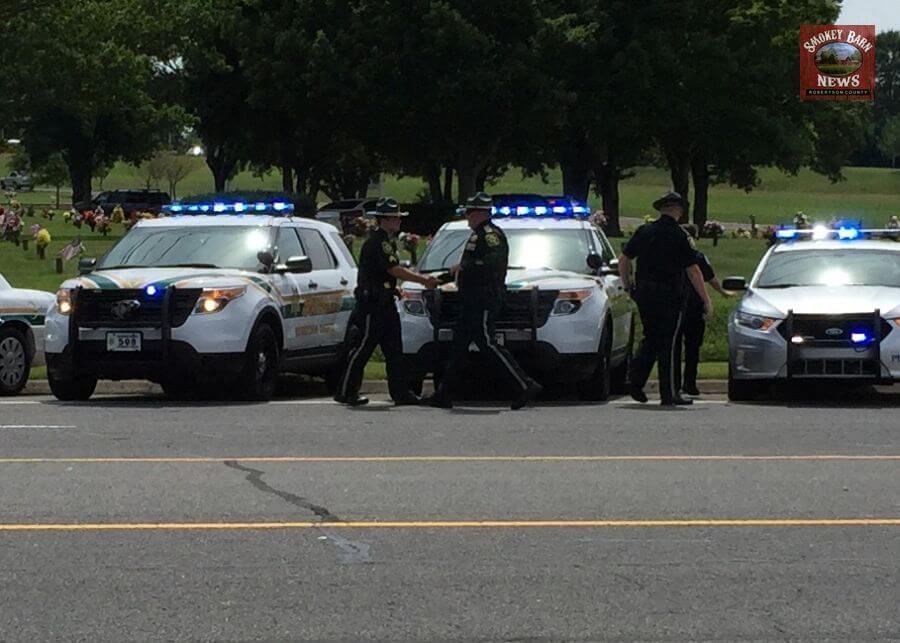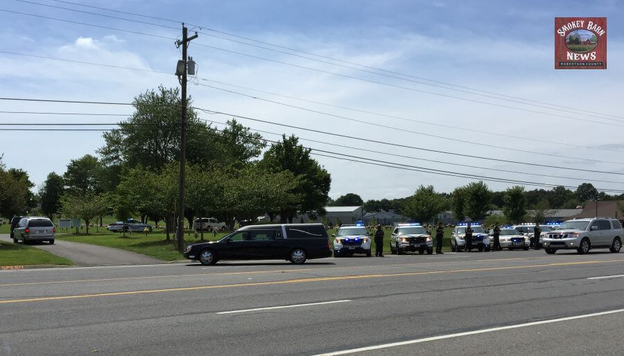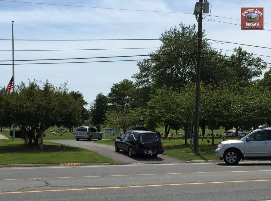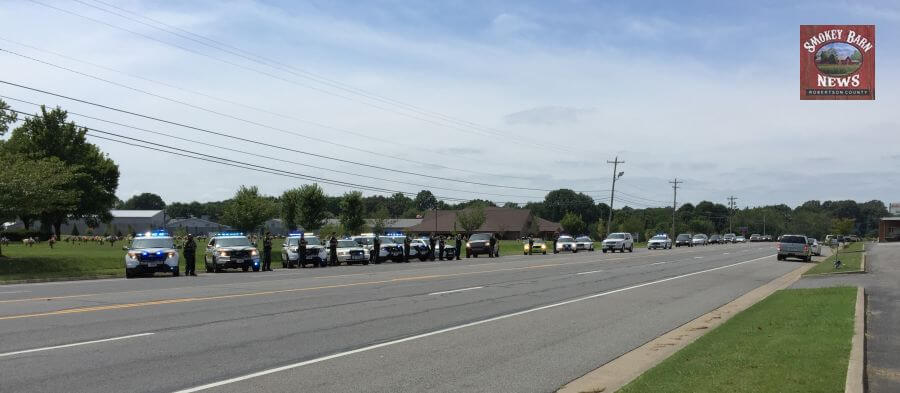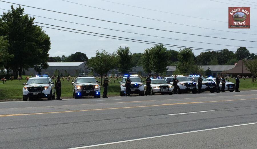 In a show of respect, the Robertson County Sheriff’s Office lined up their vehicles in front of Springfield Memorial Gardens on Memorial Blvd.