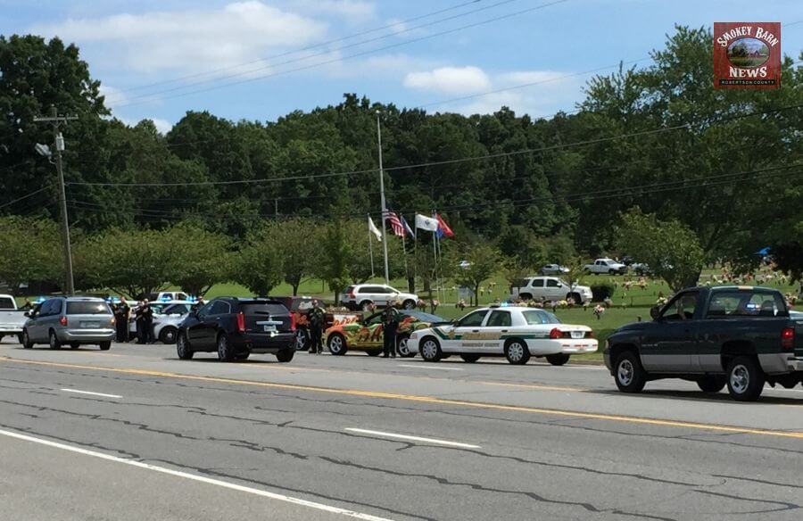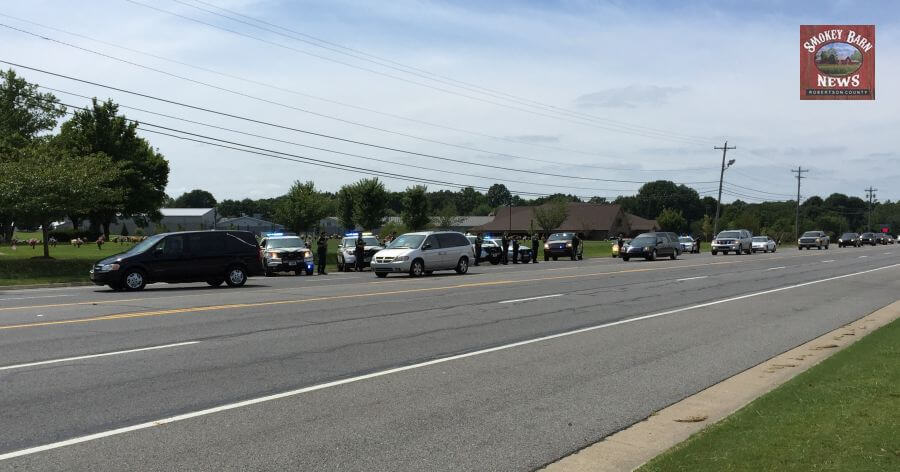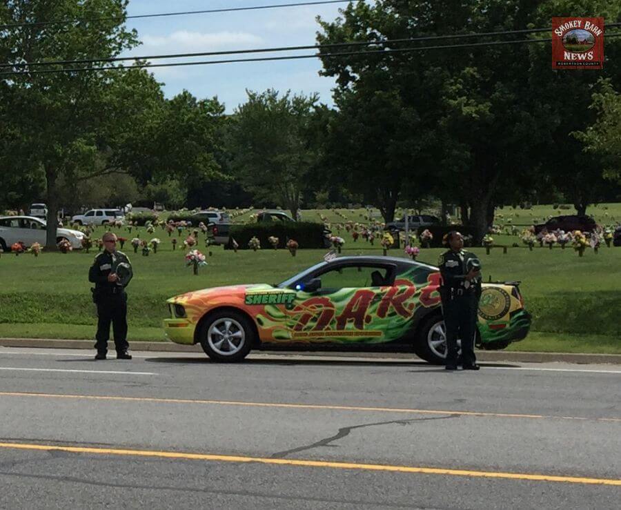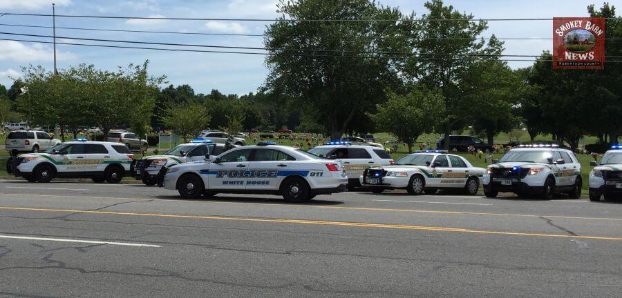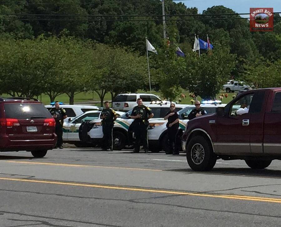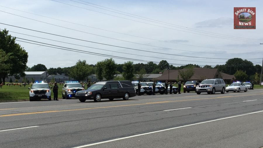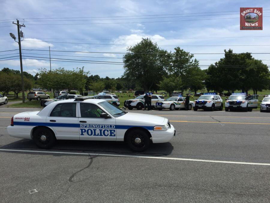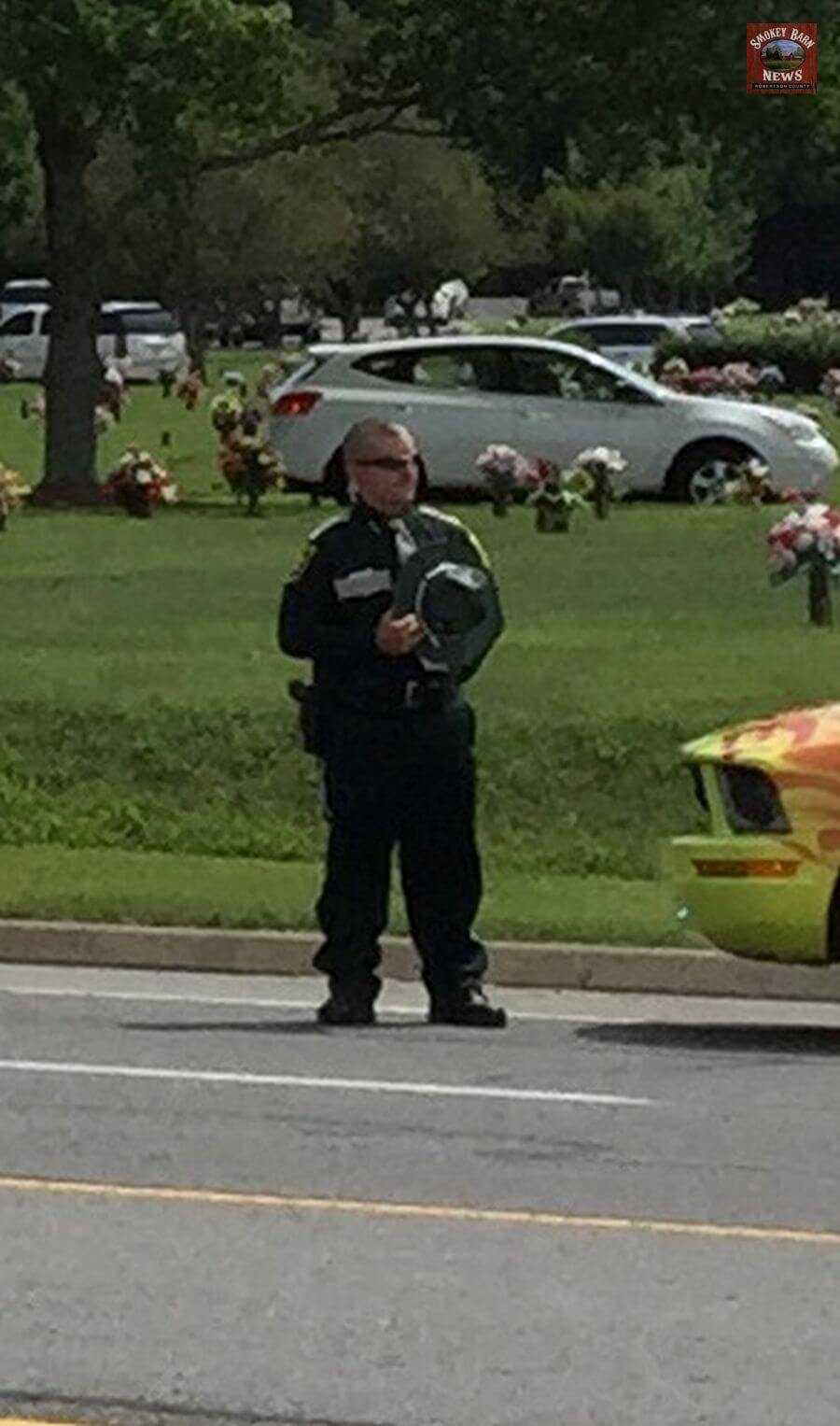 In a show of respect, the Robertson County Sheriff’s Office lined up their vehicles in front of Springfield Memorial Gardens on Memorial Blvd.