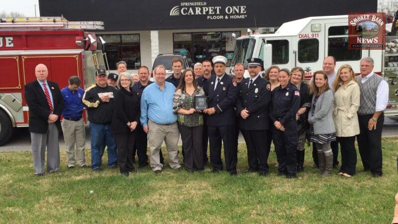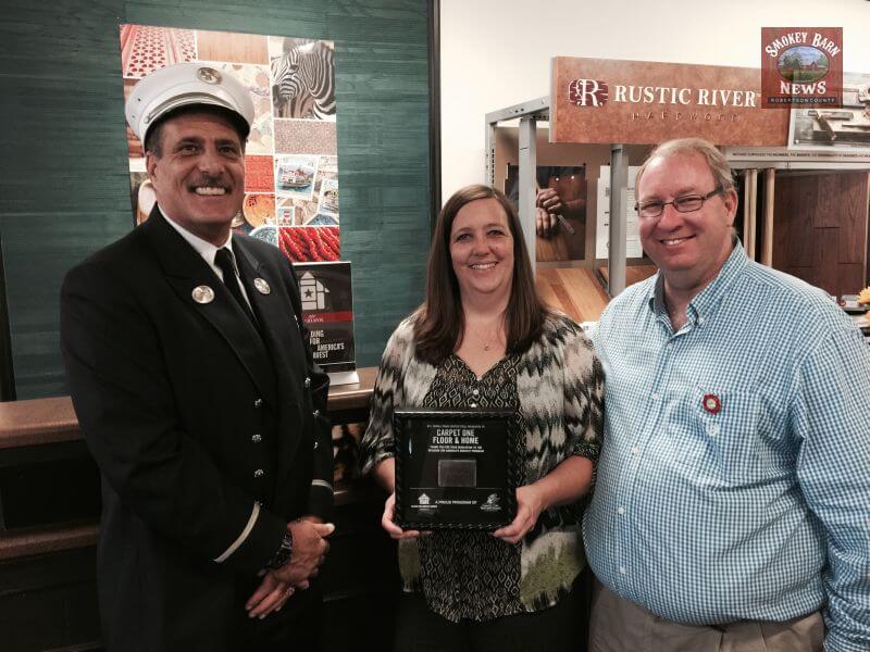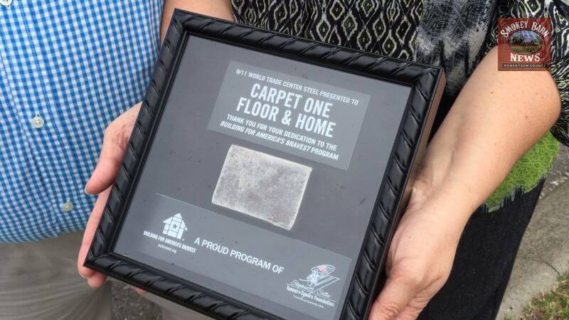 SPRINGFIELD TENNESSEE: (Smokey Barn News) – Lt Richard Thomas was a New York City Firefighter on 9/11. Lt Richard Thomas drove up to Robertson County to hand deliver a piece of 9/11 steel from New York’s ground zero to Mitch & Dayna Lancaster, Springfield Carpet One and to personally thank them for their generous support of the “Stephen Siller Tunnel to Towers” Foundation.