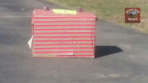 CROSS PLAINS TENNESSEE: (Smokey Barn News) – Around 11am Friday morning, a Cross Plains man woke up to find a large box wrapped in Christmas paper in the middle of his driveway. Attached to the box was a note that read, “Open ASAP.” According to police, the man was in town temporarily on an internship and was not expecting a delivery of this nature and had no idea who might be sending him gifts. Something about the package just didn’t add up, so the decision was made to call 911.