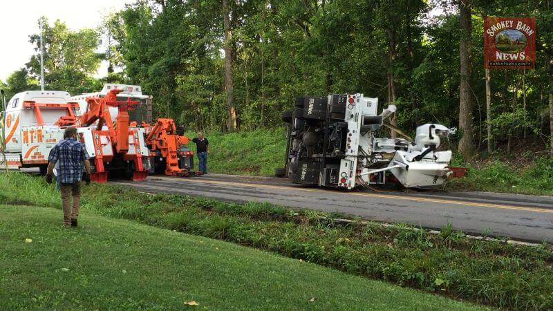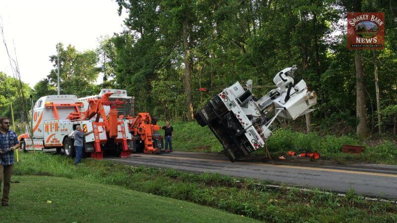 Around that same time a bucket truck operator lost control of the vehicle and crashed into an embankment. The vehicle flipped over onto its side but fortunately the driver was not injured. For more info on the crash see our video report.