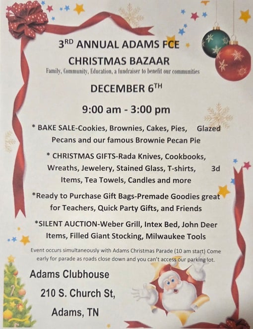 School events, church events, community fundraiser events, community gatherings, fundraisers, Announcements, Public Notices & rallies in Springfield, Greenbrier, Adams, Ridgetop, White House, Cross Plains, Millersville, Cedar Hill, Coopertown & Orlinda in Robertson County Tn, Tennessee!
