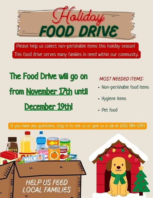 Residents are welcome to come in monthly for assistance. If you have questions please call 615-384-8306.