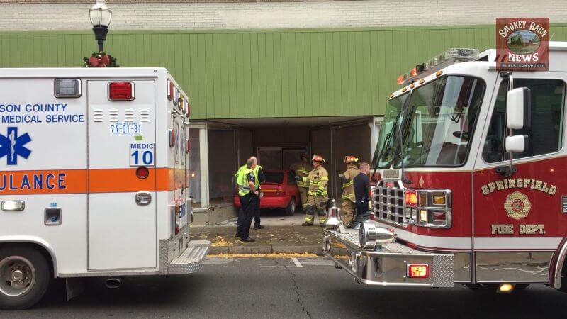 SPRINGFIELD TENNESSEE: (Smokey Barn News) – A vehicle crashed into a building in Springfield Monday afternoon. The accident occurred just before 2:00 p.m. in the historic district in Springfield just up the street from the Robertson County Courthouse.