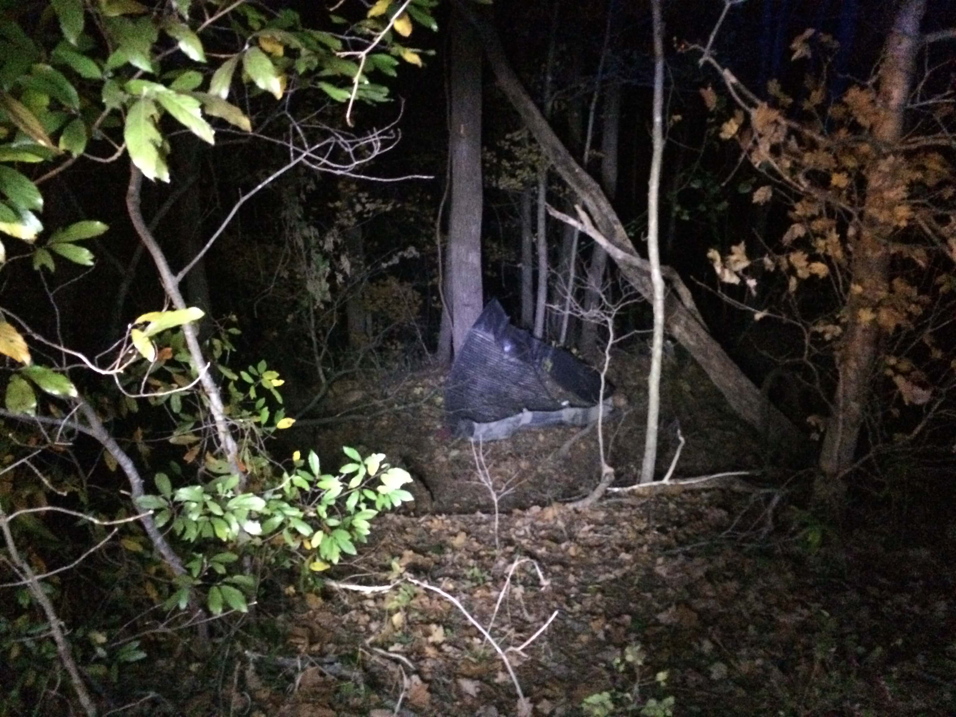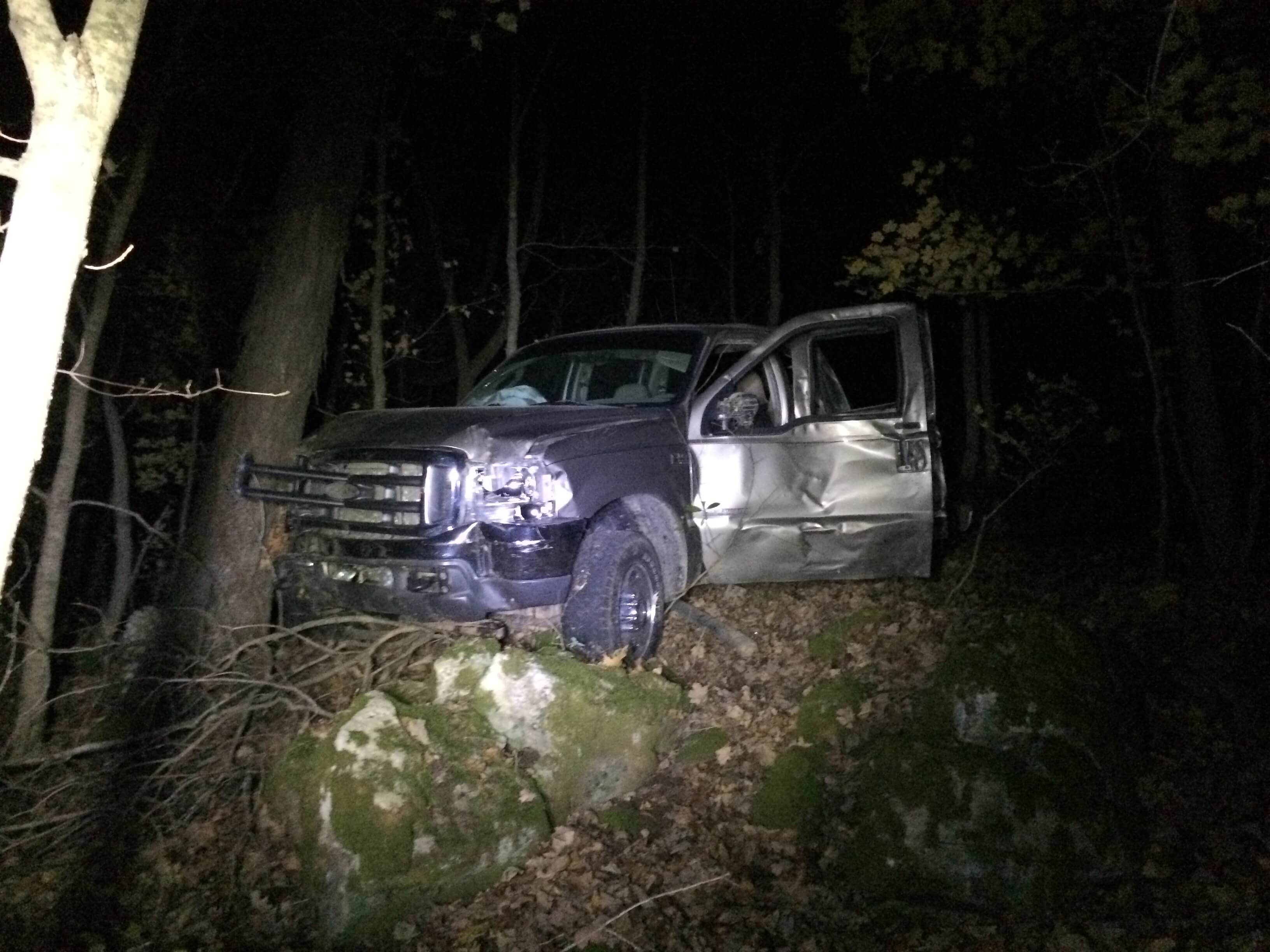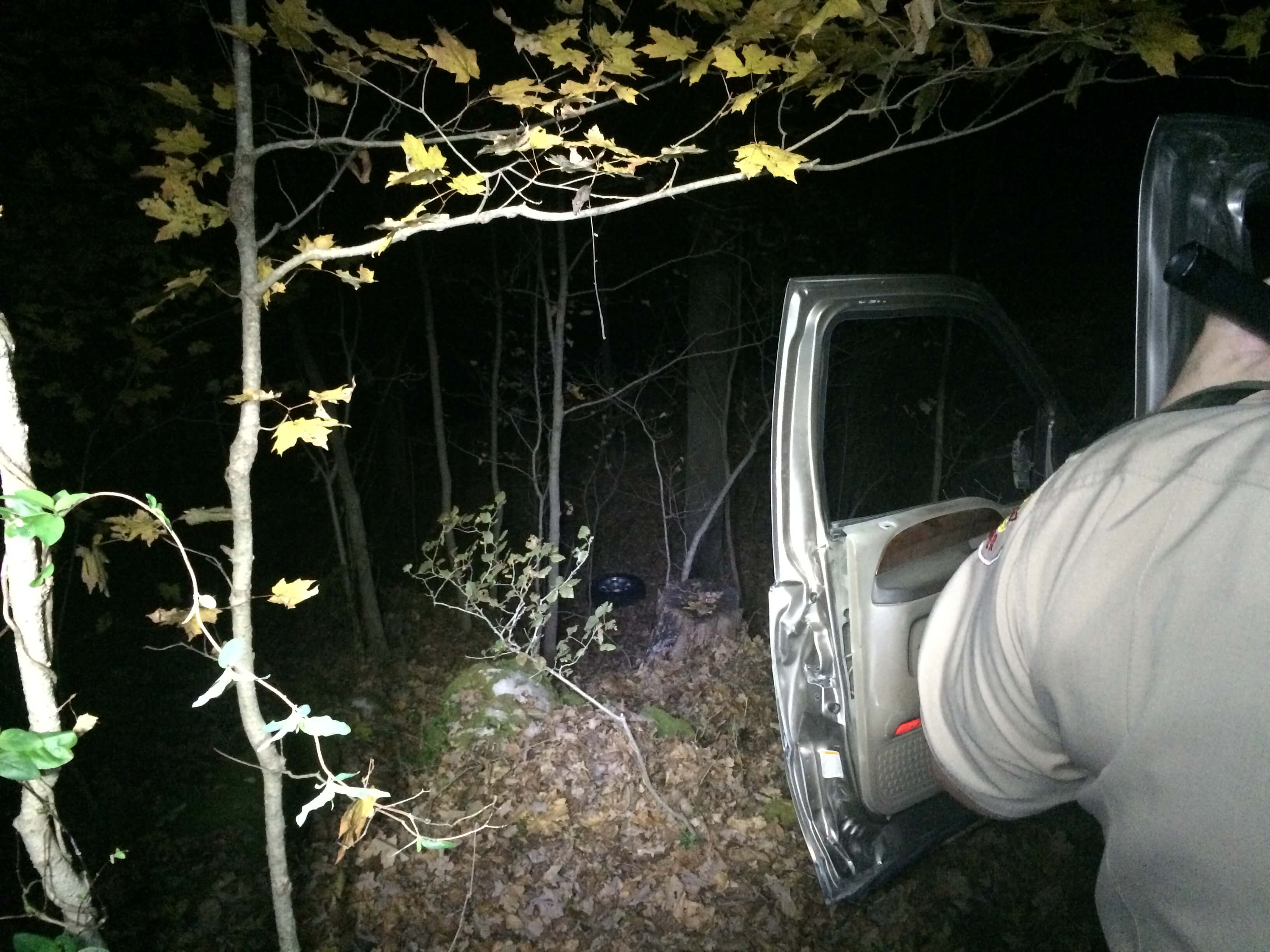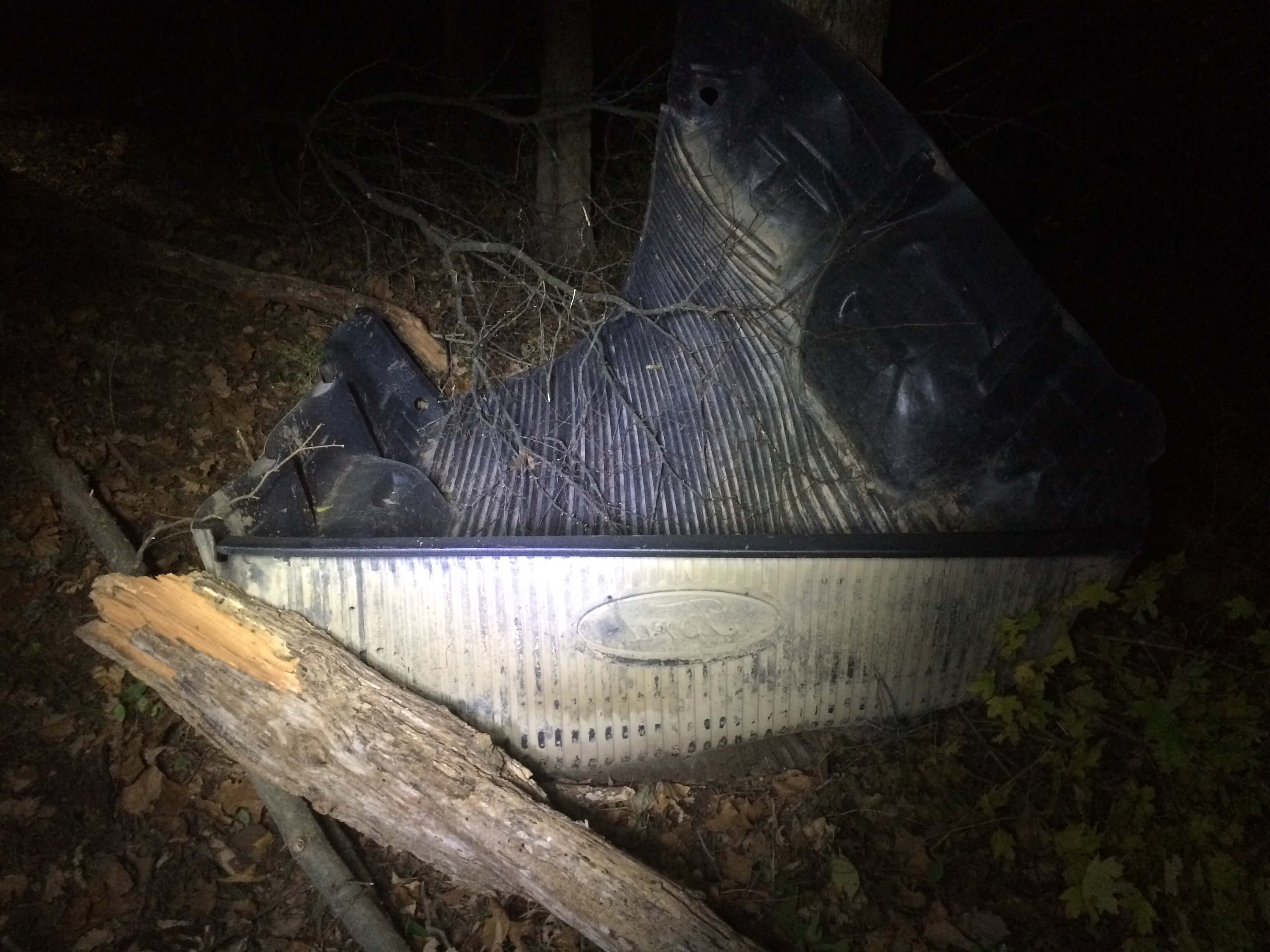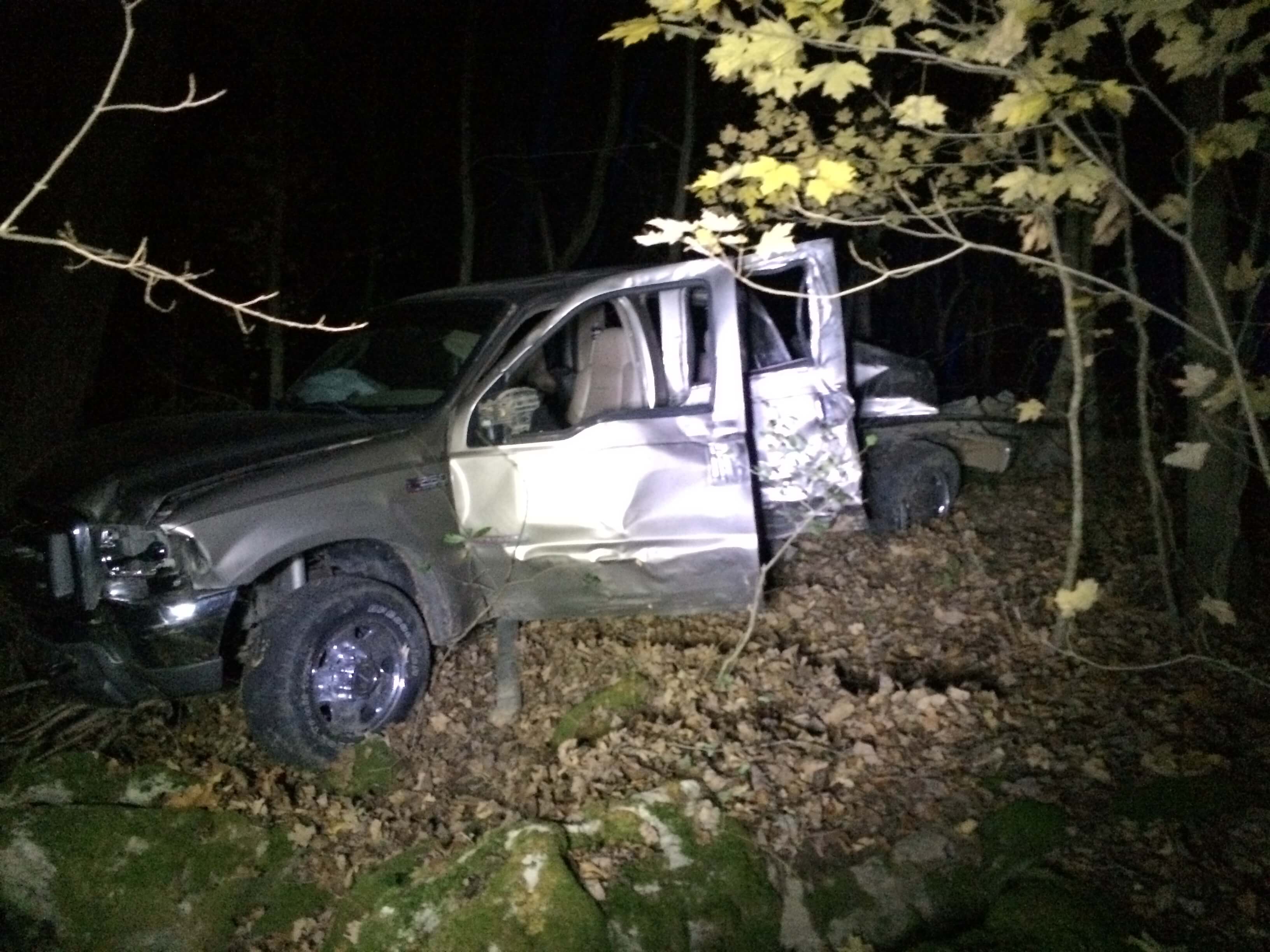 According to Cooper, after impacting the utility pole, the truck traveled another 80 to 100 feet along the side of the road tossing a sink and a stove from the bed of the truck along the way. The truck then veered sharply left into a thickly wooded area and down a steep embankment. The truck was tossed left and right ricocheting off trees as it sailed down the embankment towards Millers Creek.
