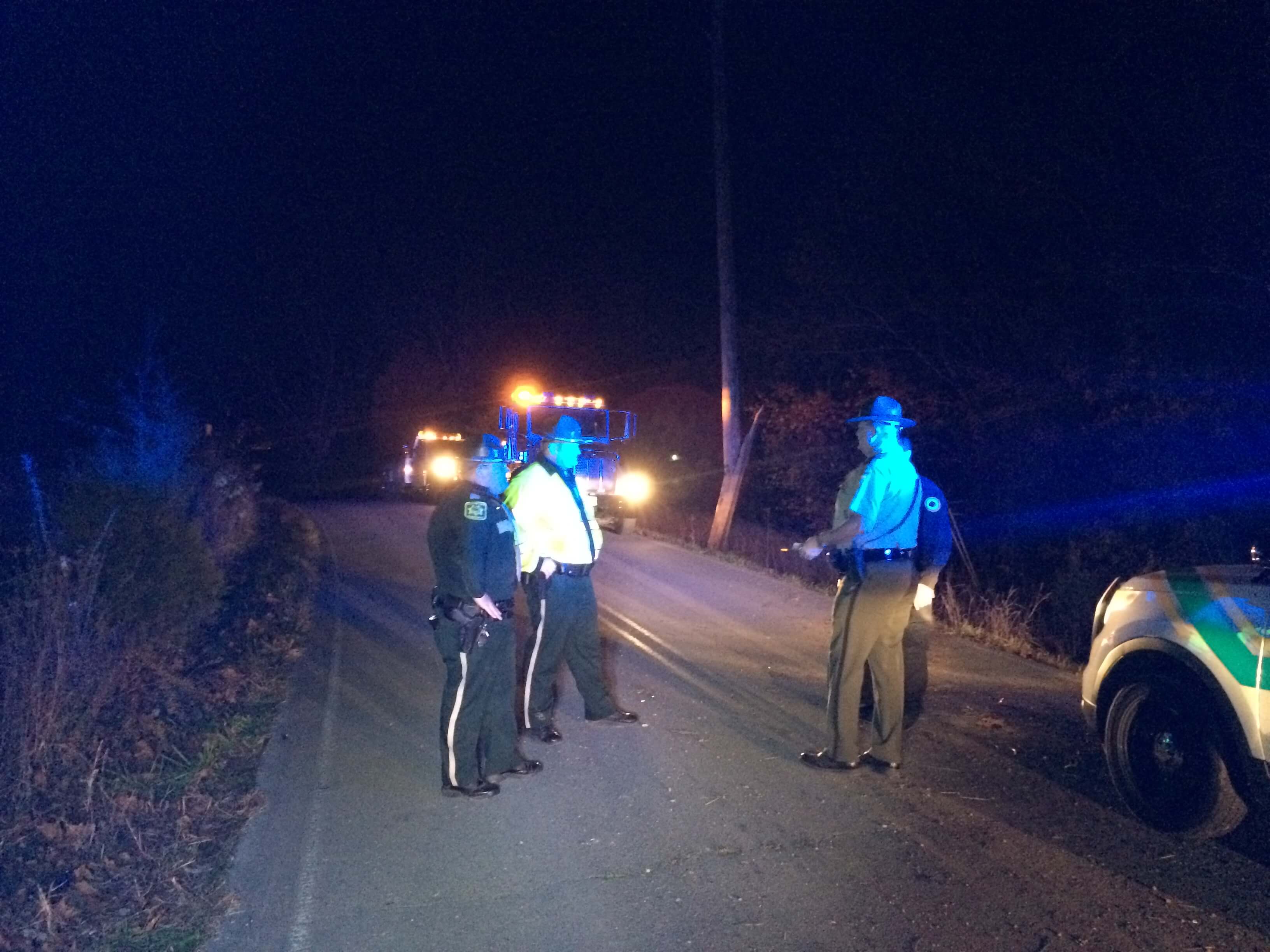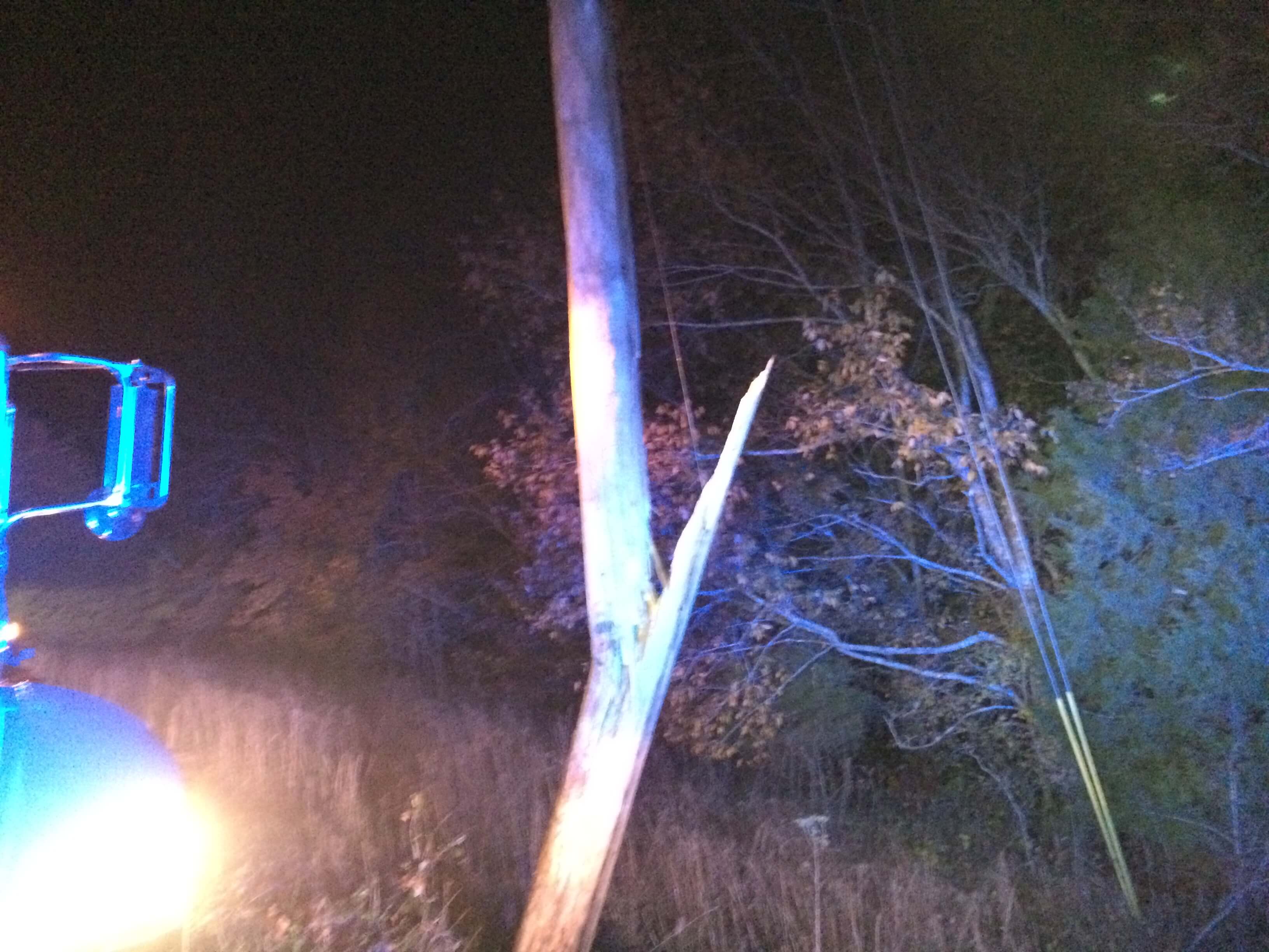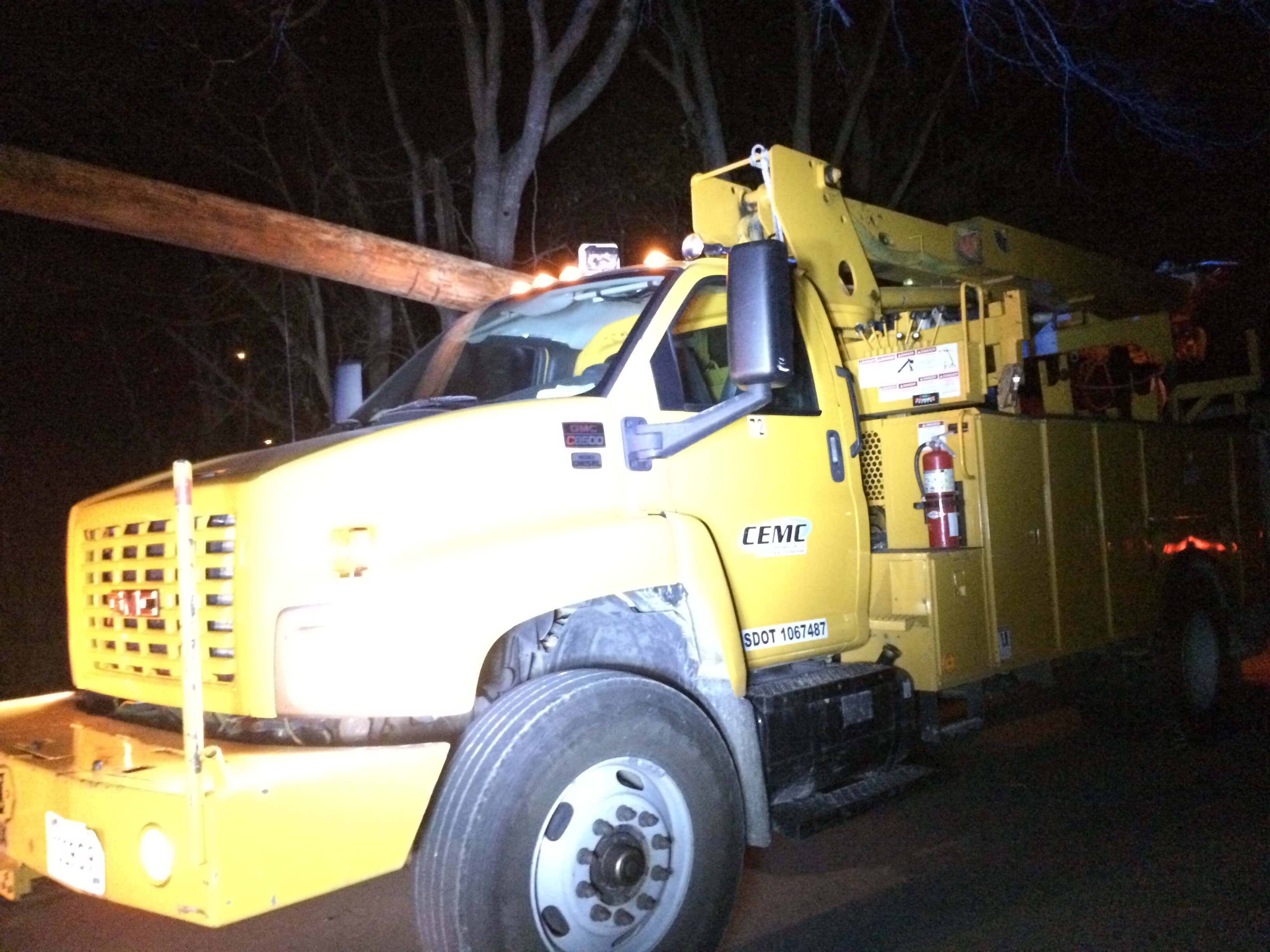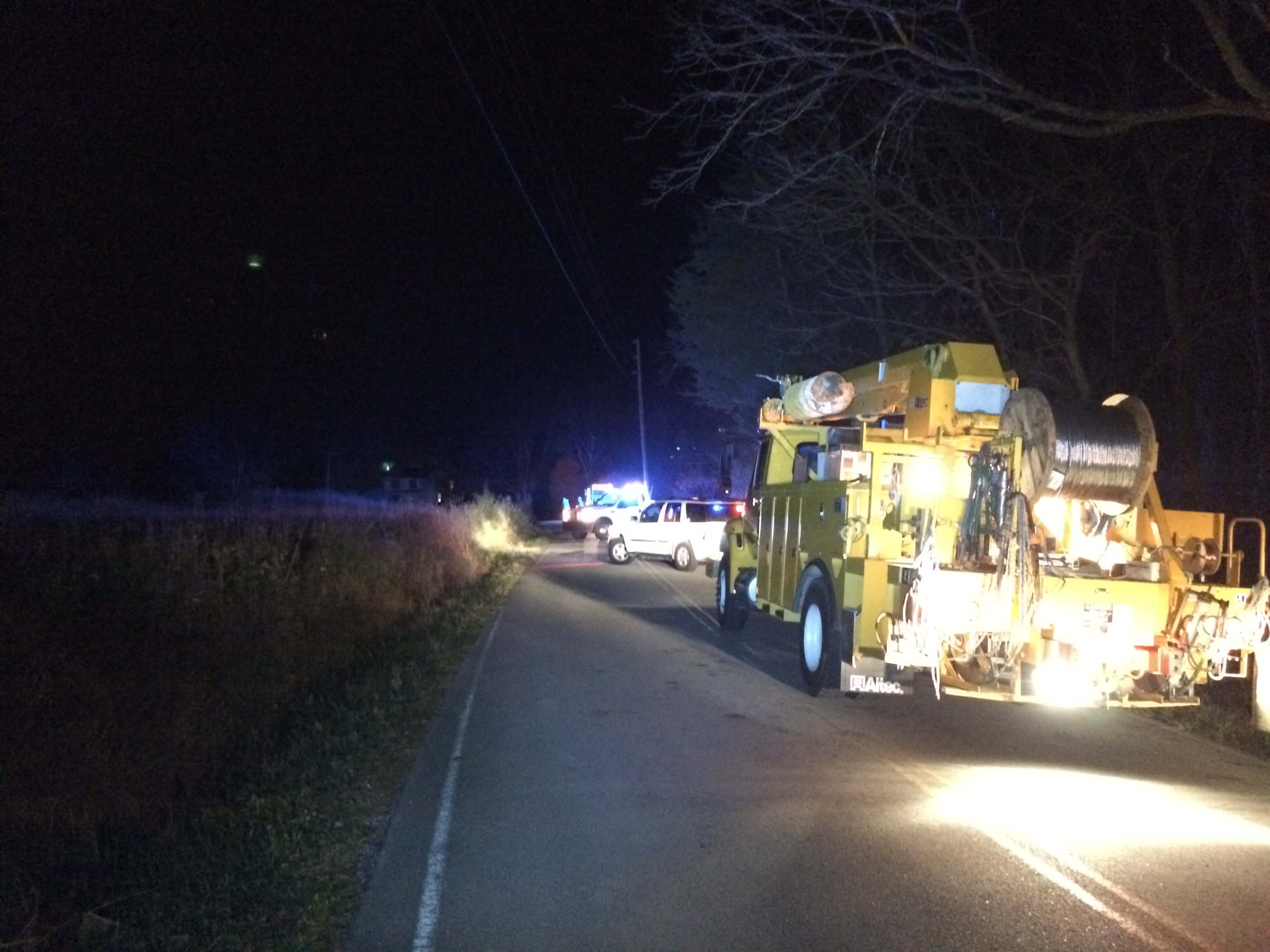 The truck was a good distance down the embankment with no vehicle access making the process of retrieving it somewhat time consuming. In addition, CEMC was called in to replace the damaged utility pole. In all, the road was closed for about two hours while crews cleaned up the scene.