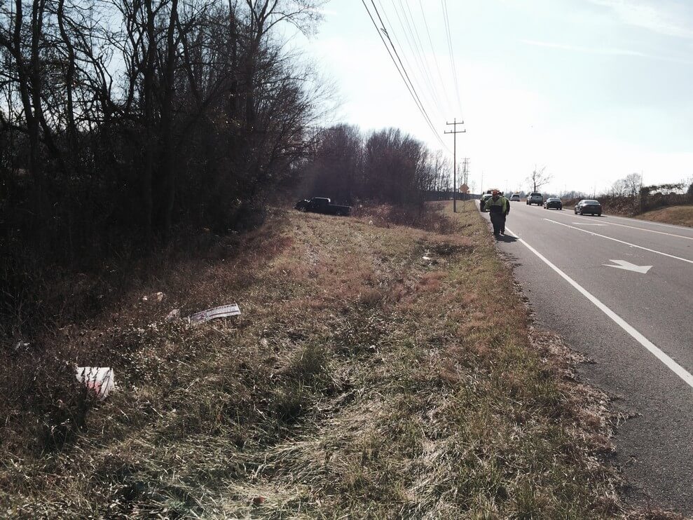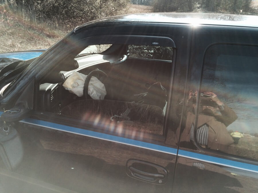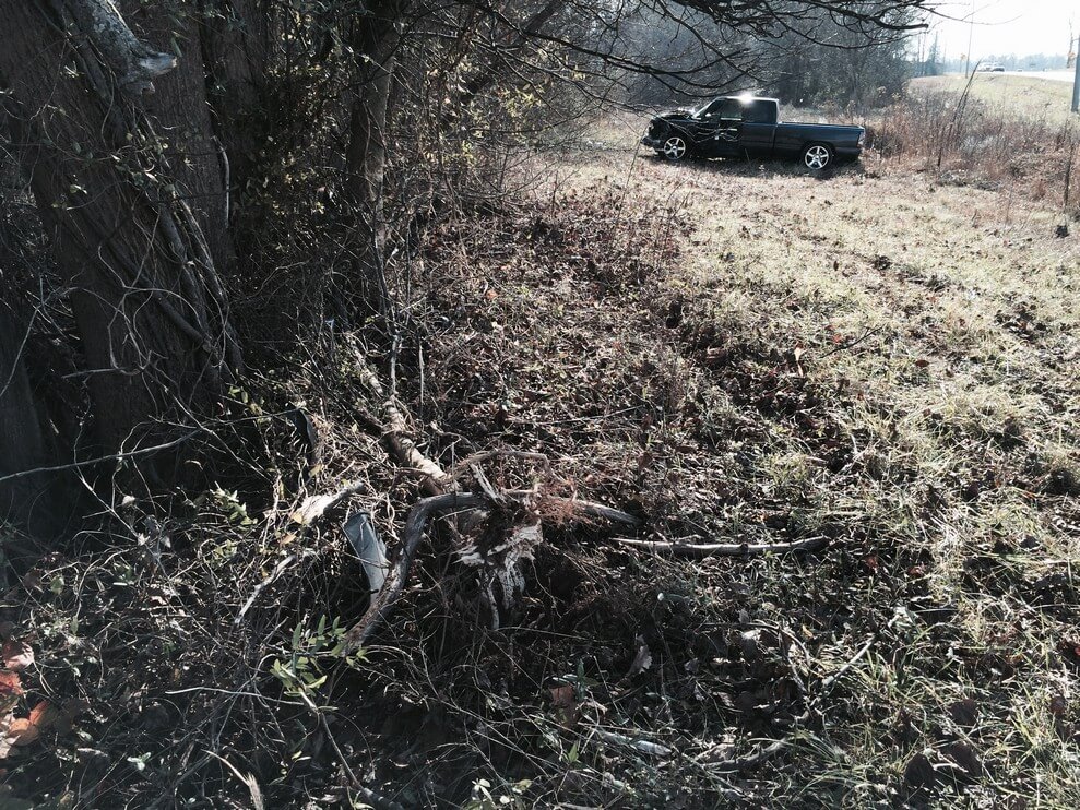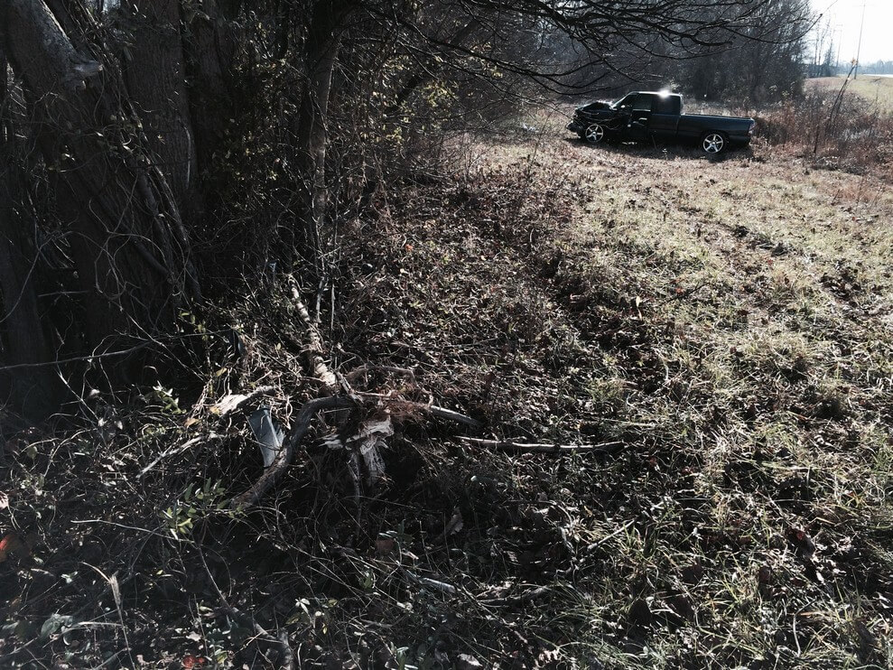 According to Coopertown Police, Jeff Sale, 47, of Clarksville was traveling West on Hwy 49 Sunday afternoon around 12:36PM when his pickup left the roadway directly across from Coopertown Middle School and impacted a treeline. (Location of wreck) After the impact the vehicle spun around stopping some 30 feet from the initial impact site.