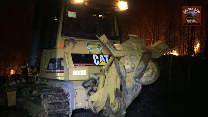 The Tennessee Division of Forestry service arrived with special equipment along with an industrial dozer to build trenches to create a barrier around the fire which is a standard wildfire suppression tactic. The dozer is equipped with special air filters, air-conditioning and safety glass to allow the driver to safely enter the fire zone to dig the trenches.