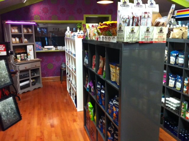 For people Our Serenity Shop carries organic nuts, organic bars, non GMO products, re-purposed jewelry, clothing, art. Coffee is served, cold drinks are offered.
