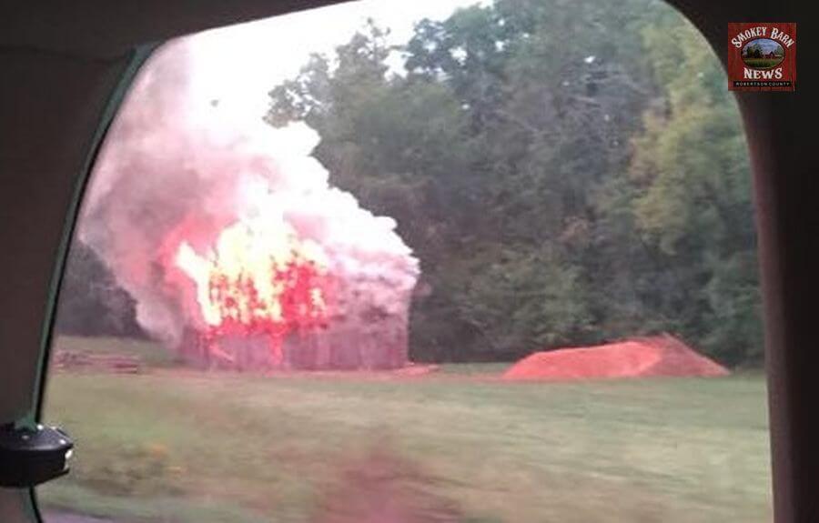 ADAMS TENNESSEE: (Smokey Barn News) – A Springfield family heading through the Adams/Cedar Hill area snapped these photographs of a tobacco barn on fire Saturday afternoon.