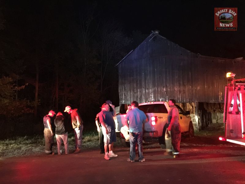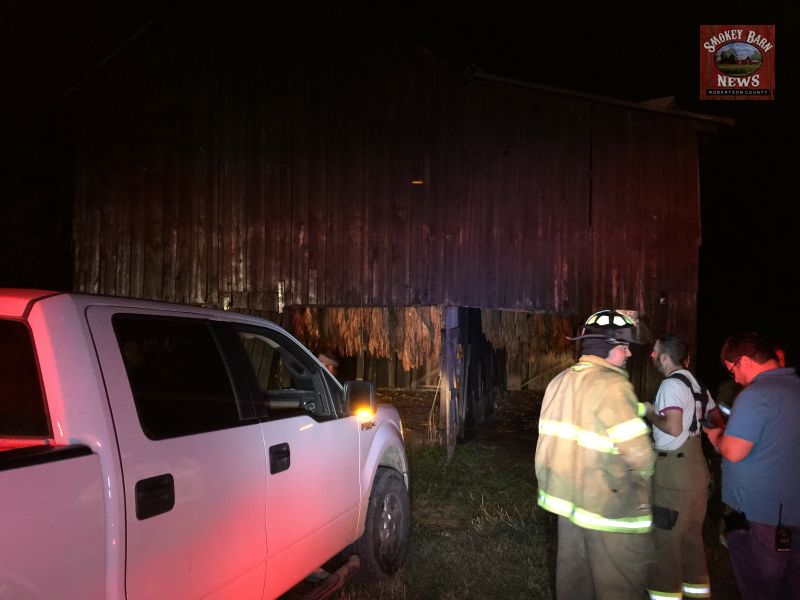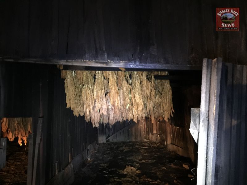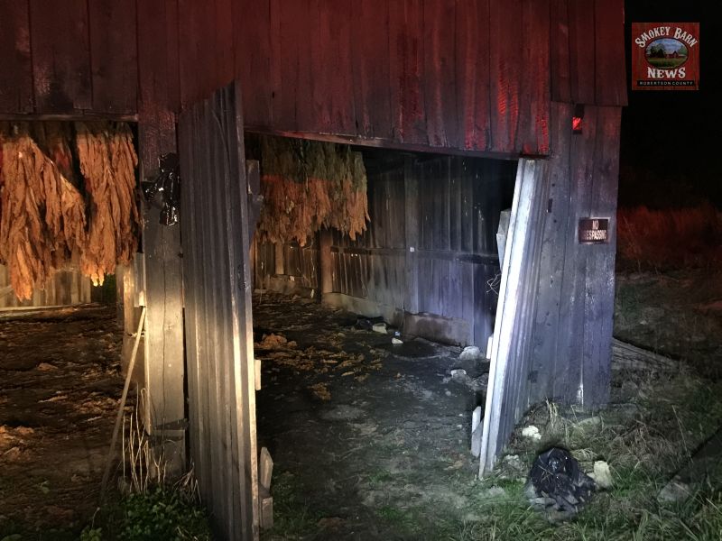 North Robertson and Adams Fire Departments were dispatched and extinguished the fire. Deputies with the Robertson County Sheriff’s Office also responded and suspected criminal activity due to the fact that the barn is an air-cured tobacco barn, not a fired or smoking barn. Smokey barns (as we like to call them) are beautiful to look at but there is a danger that the smoldering wood inside the barn could ignite the barn itself. It’s a risk all dark fired tobacco farmers face each year in Robertson County- but this barn is air-cured which offers no risk of fire for the farmer.