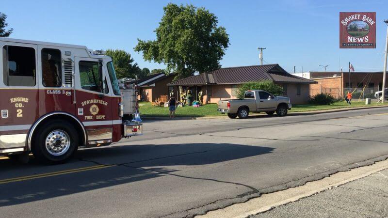 According to Captain Yates with the Springfield Fire Department, the residents of the home (located on the corner of Pine Cir and Central Ave) had a moving sale the day before and the left over items were pulled up onto the porch over night. Yates told Smokey Barn News that some time this morning the items were set on fire. Yates said they are calling the fire suspicious and the fire marshal was called in to take a look at the scene.