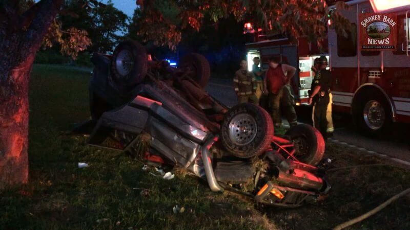 The call to 911 came in at 6:38pm Wednesday evening. According to the Tennessee Highway Patrol at the scene, the 21 year old driver from Greenbrier crossed the center-line and preceded onto the left shoulder missing oncoming traffic. After leaving the roadway the vehicle crashed into two mailboxes before it rolled over and impacted a tree, finally landing upside down in a ditch.