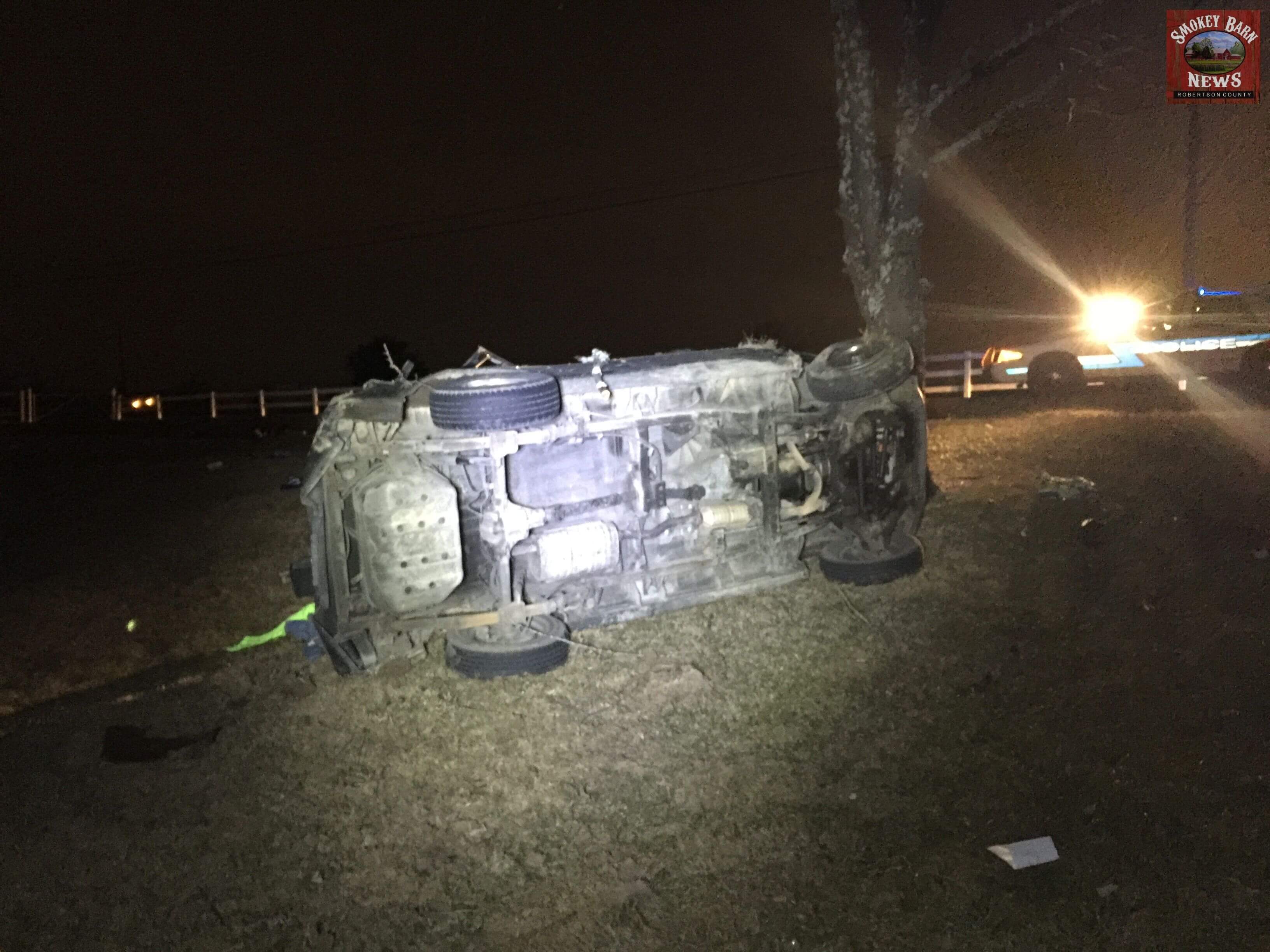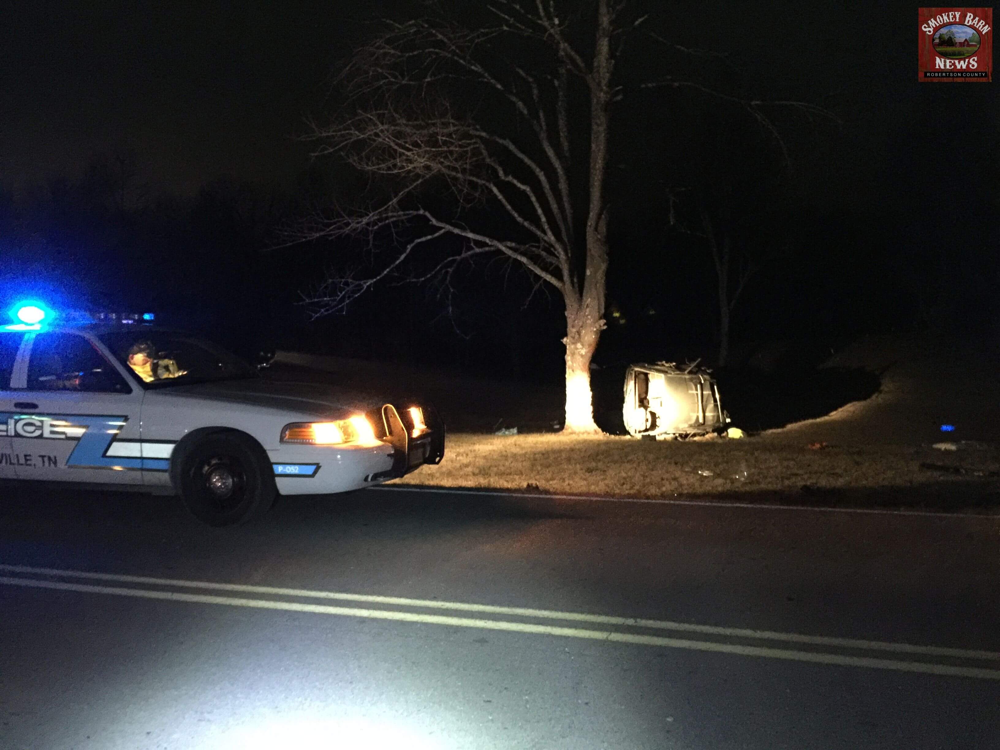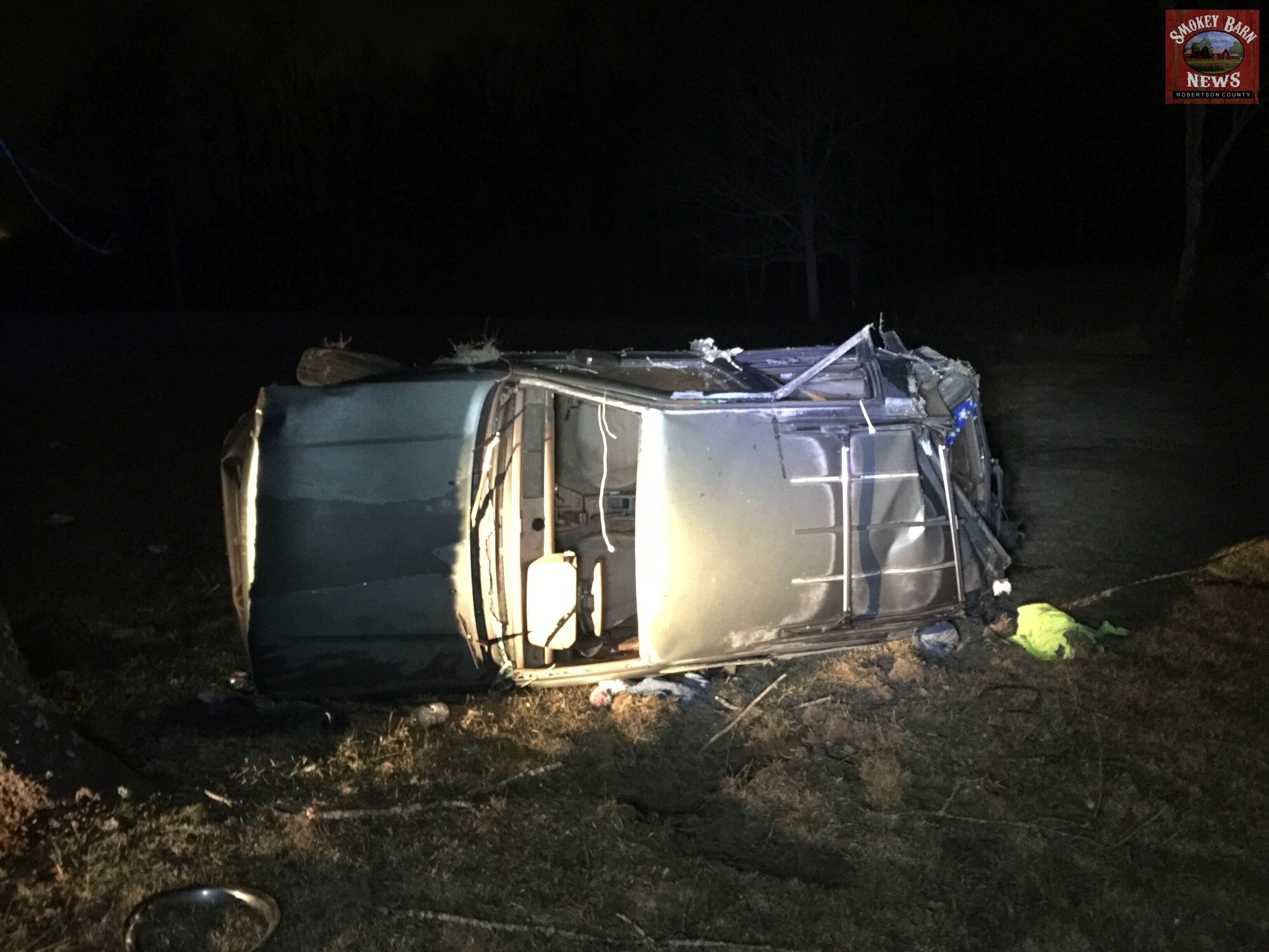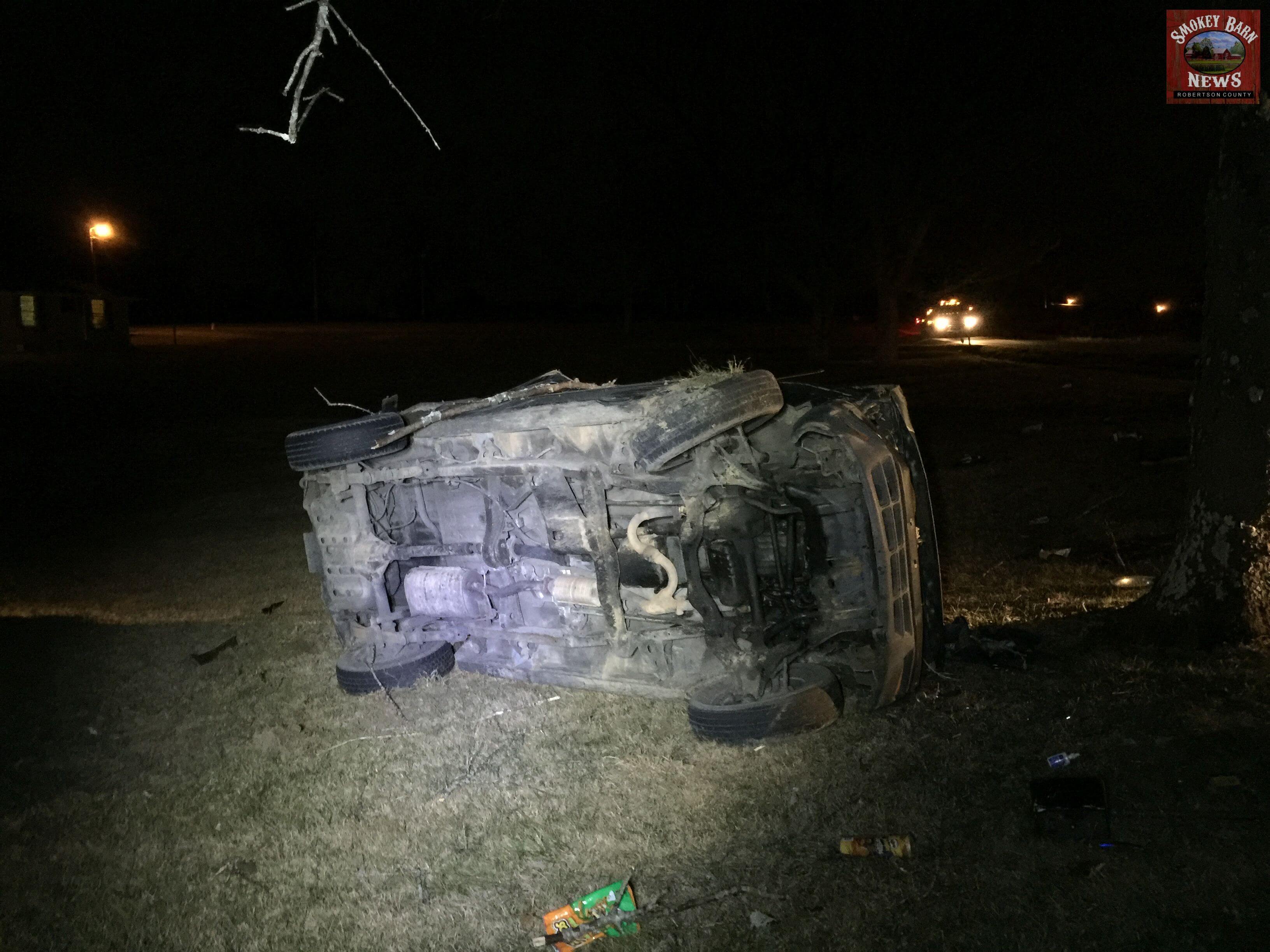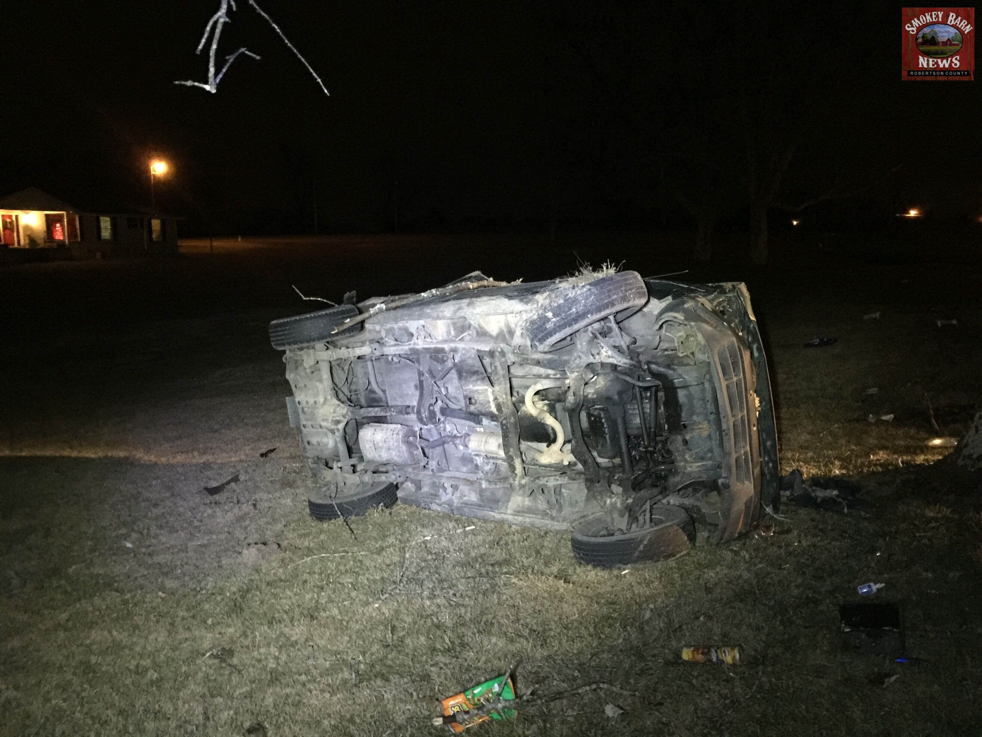 SPRINGFIELD TENNESSEE: (Smokey Barn News) – A Greenbrier man is lucky to be alive this evening after he lost control of his vehicle, left the roadway and crashed directly across from Highland Rim Speedway. The accident occurred around 8:00pm Tuesday evening.