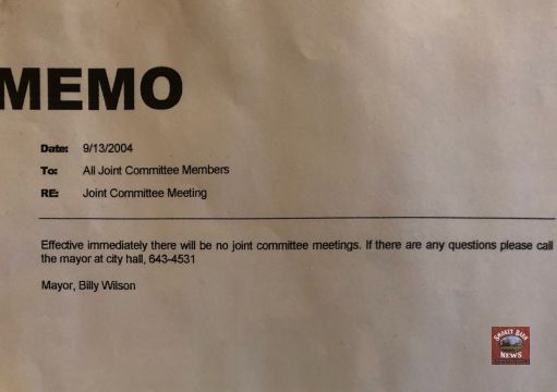 allegations telling Smokey Barn News that he put out a memo (pictured left) abolishing those type of meetings days after taking office. “From September 1st when I took office until January 24th of 2014 there was never one of those meetings, never happened,” Wilson said.