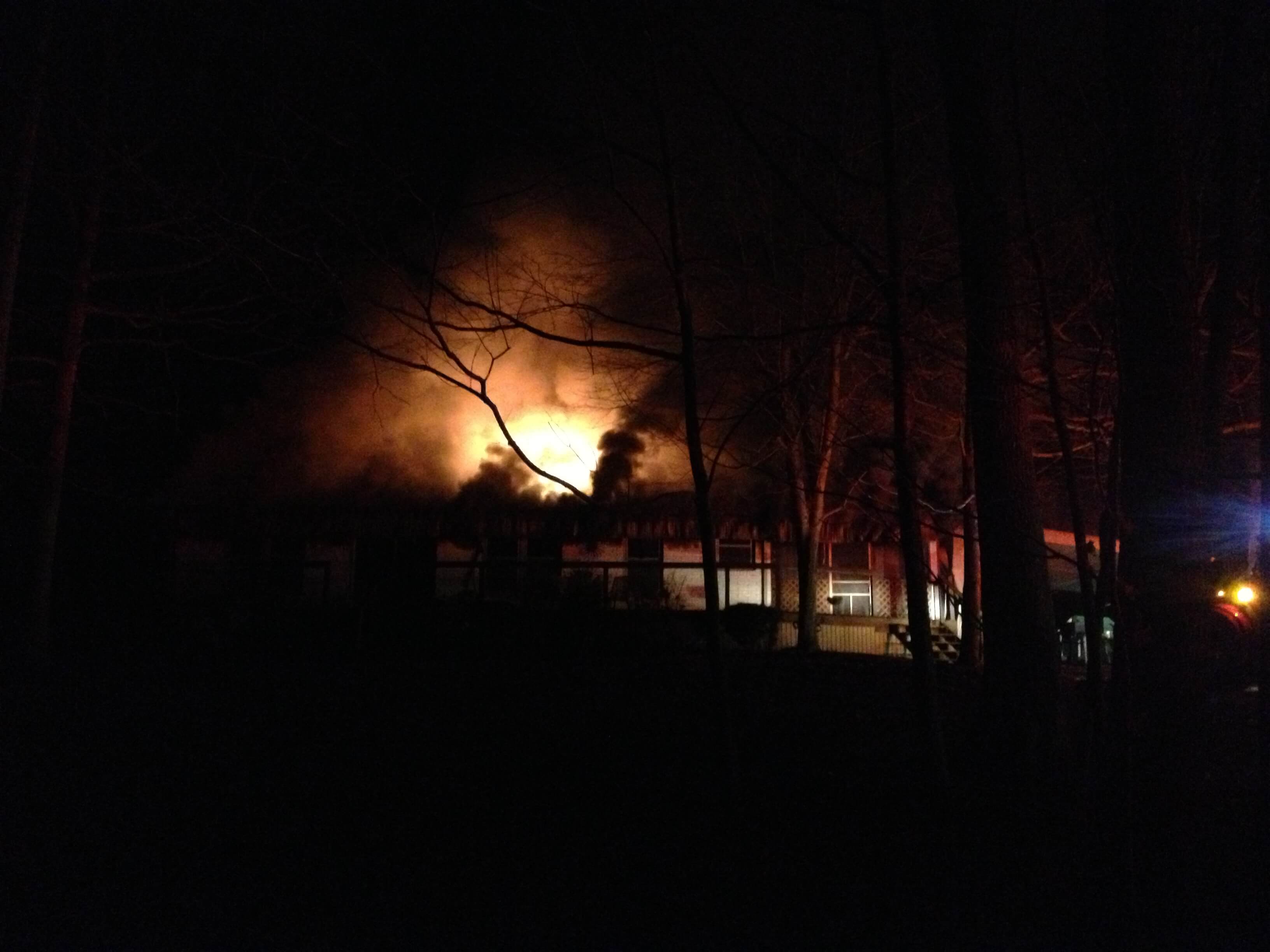 The fire appears to have started in the master bedroom when a 2 year old child threw a ball for the dog. The Mother is unsure if the ball knocked over the burning candle on a desk into the drapes or if the dog jumped up to catch the ball causing the candle to tip over. However, Everyone did make it out safely.