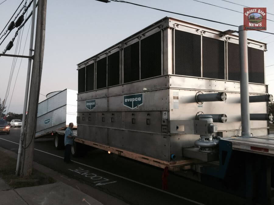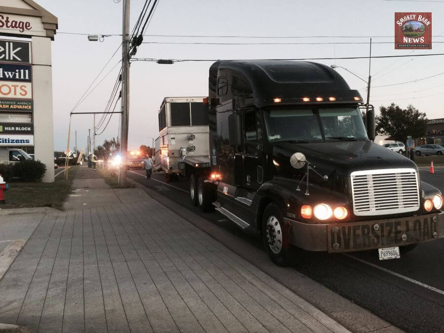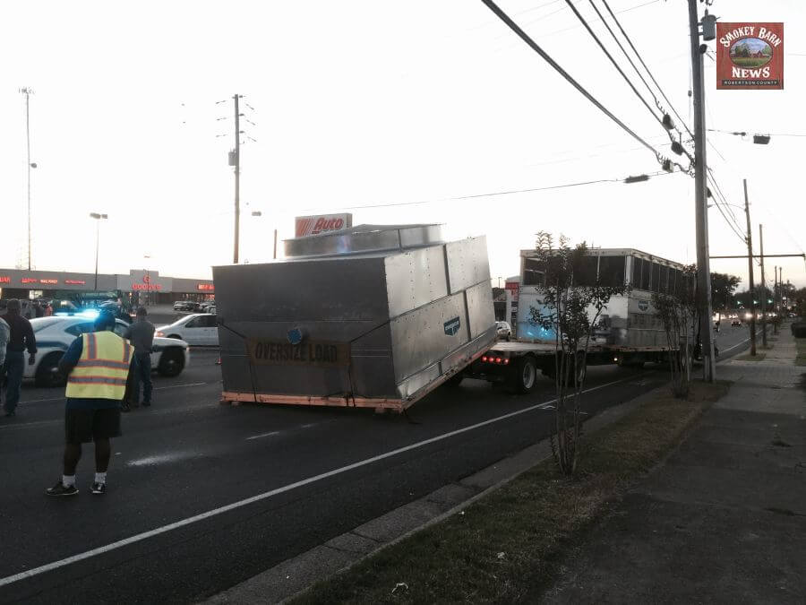 SPRINGFIELD TENNESSEE: (Smokey Barn News) –Memorial Blvd was brought to a crawl in Springfield Thursday evening after a large part for an industrial air-conditioning system fell off the back of a semi on Memorial Blvd. (Location of wreck) It took crews about an hour to get the large industrial unit, which was almost as big as a house, back on the rig. The large unit is a cooling tower and it was on its way to the Robertson County office building where a crane is waiting to lift it into position.