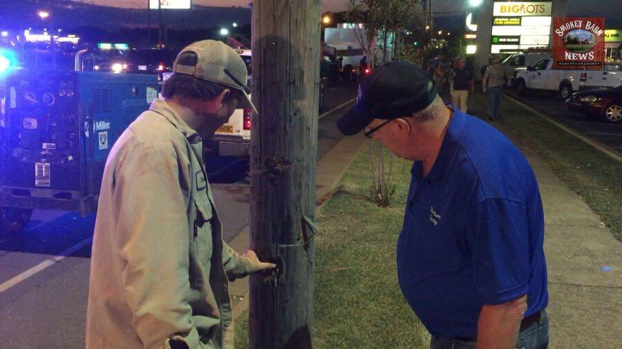 According to reports at the scene, the rig pulled into the Center Stage Shopping center on Memorial Blvd to turn around. As the rig was pulling back onto Memorial Blvd the large industrial AC unit snagged the utility pole pulling it off the semi.