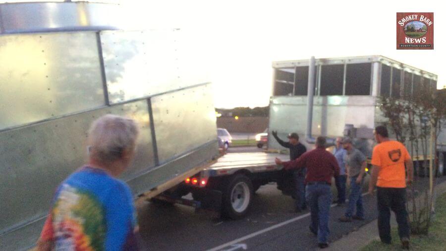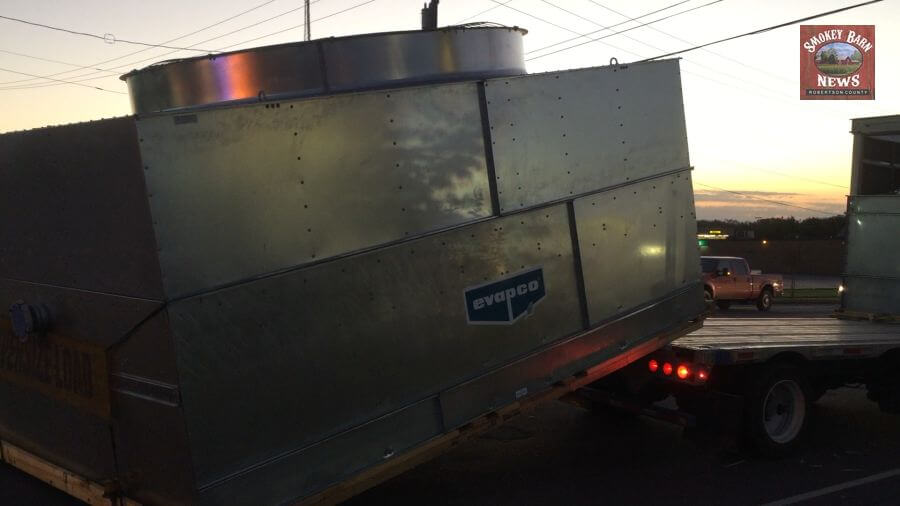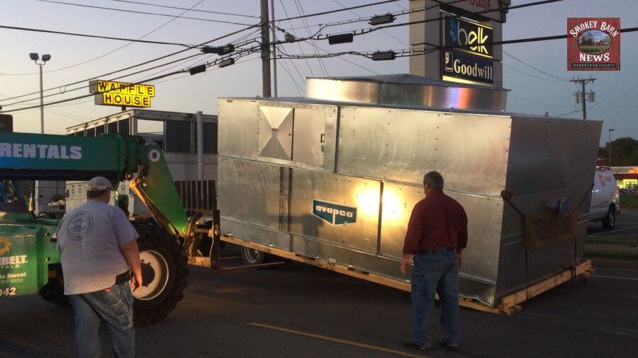 At the moment the Robertson County office building has no air-conditioning and will not until at least Monday. According to the Robertson County Director of Maintenance Joe Fort, though there is visible damage to the outside of the unit, engineers will have to lift it up with the crane and look under it to assess the full extent of the damage. Until then there’s no way to know if the unit can be installed or if it will need to be repaired.