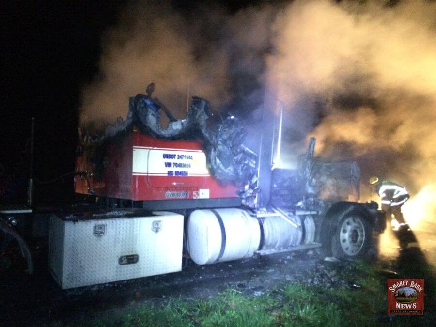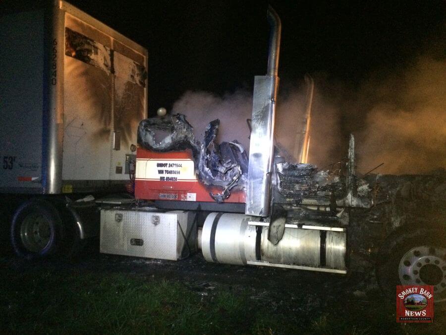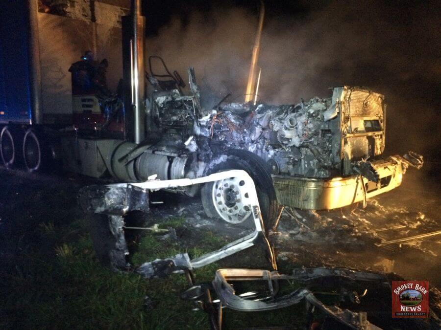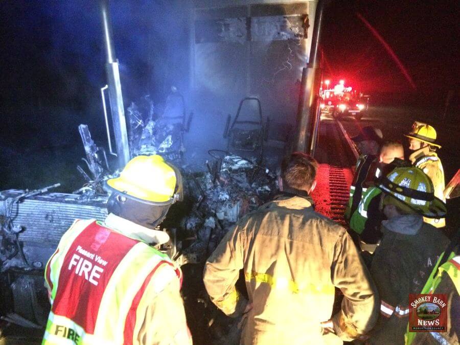 HWY I24- Tractor Trailer Destroyed By Fire Early Friday