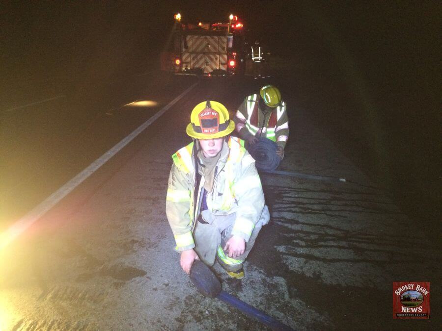 Pleasant View Fire, Robertson County Emergency Management Agency and the Tennessee Highway Patrol responded to the scene. I24 East was reduced to one lane as crews put out the fire. I24 West was not affected.