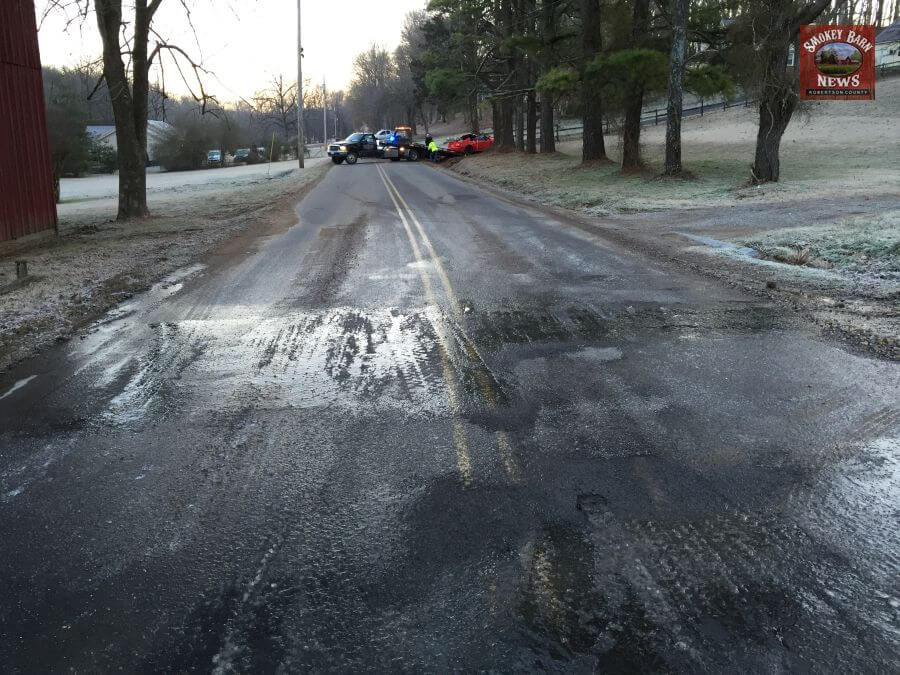 GREENBRIER TENNESSEE: (Smokey Barn News) A Greenbrier woman is at Vanderbilt Medical Center this morning with a possible broken leg after her vehicle encountered a patch of ice on Distillery Rd and crashed into a large tree.