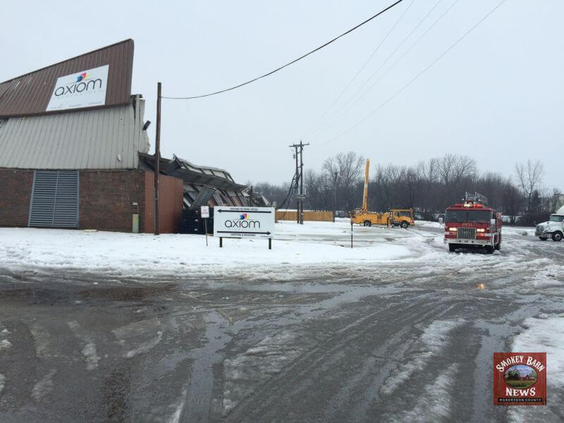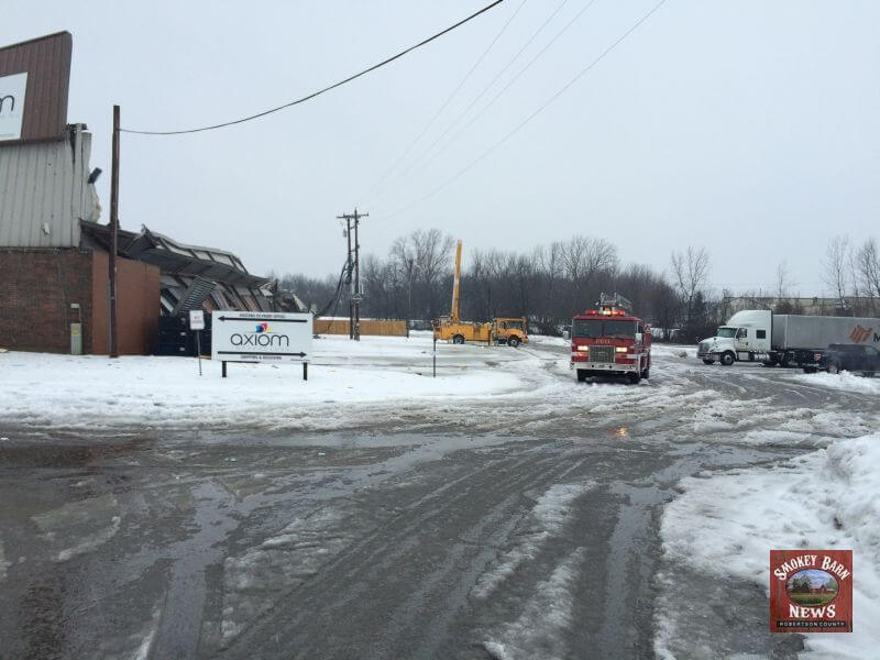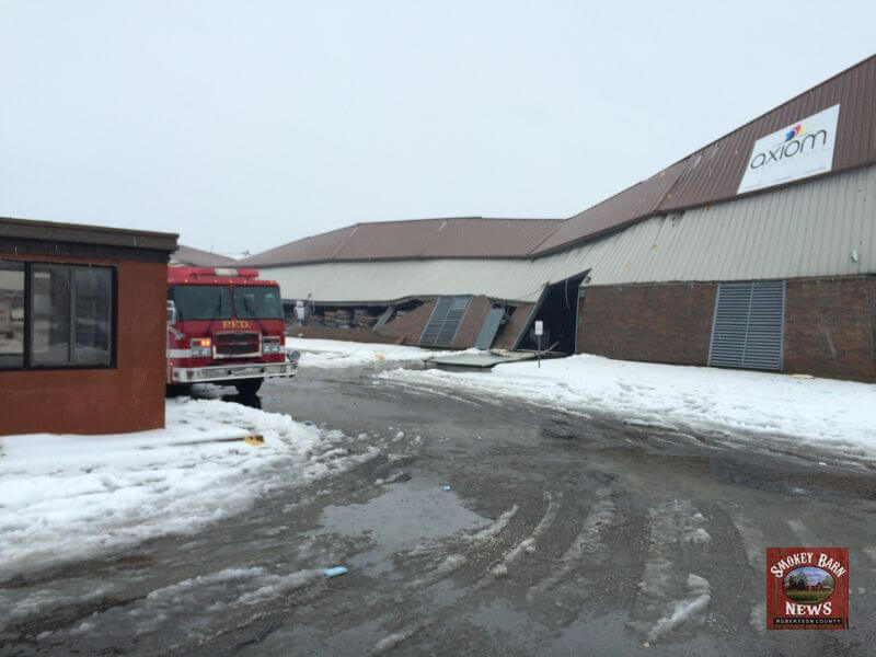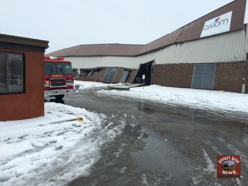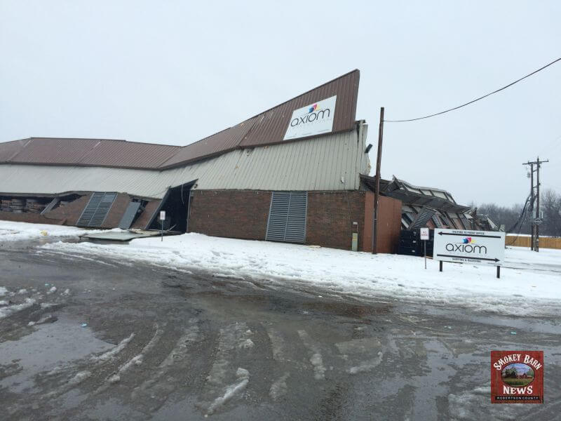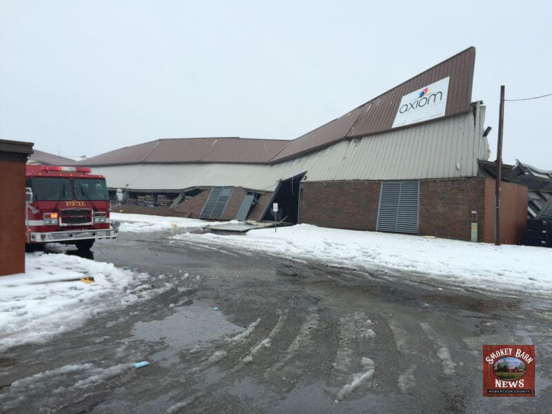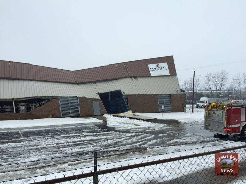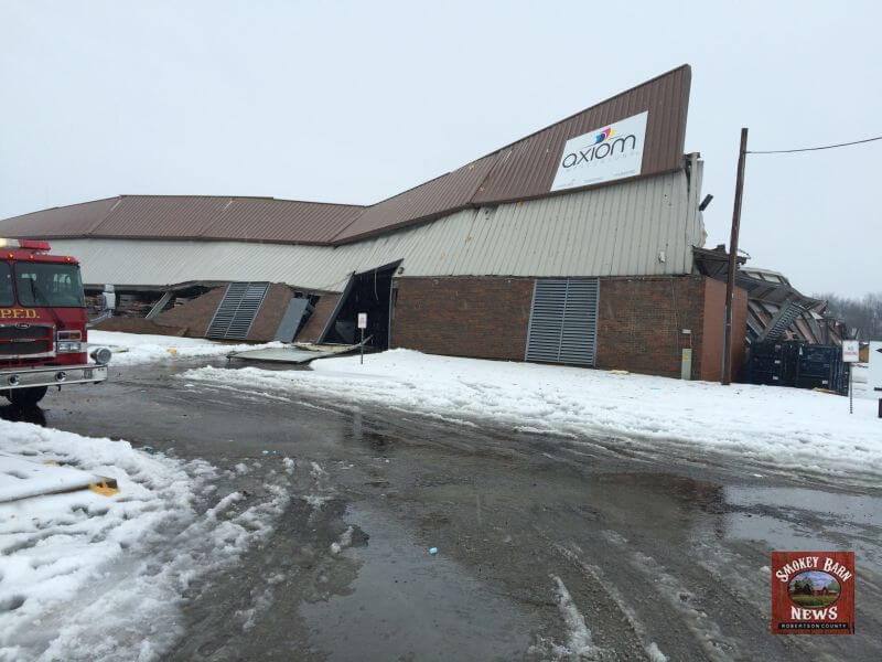 The Axiom Impressions facility located at 106 Western Dr, Portland, TN is a total loss after the the roof collapsed under the weight of snow, ice and water. map link. According to Axiom’s website, the facility is about 100,000 square feet. Officials on the scene indicated there were employees inside the building at the time of the collapse but they all managed to get out safely.
