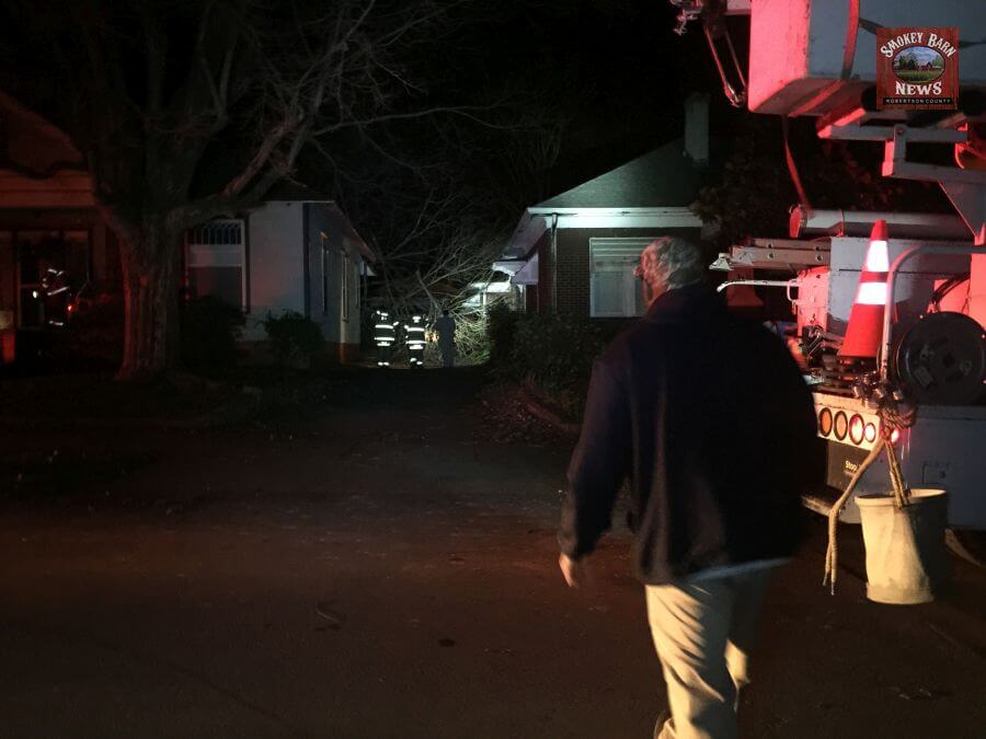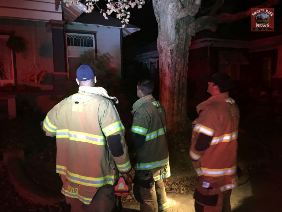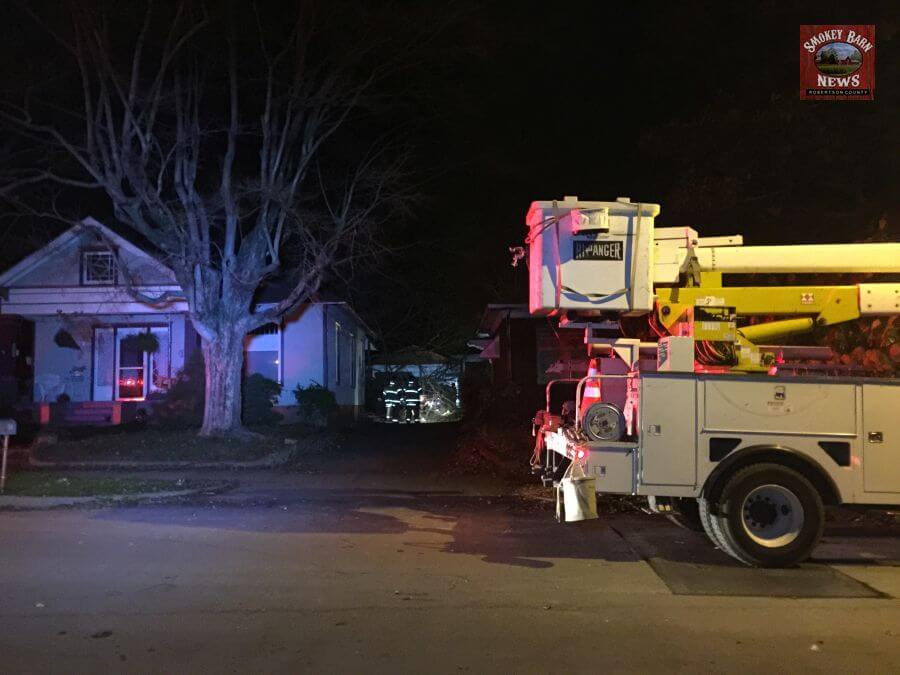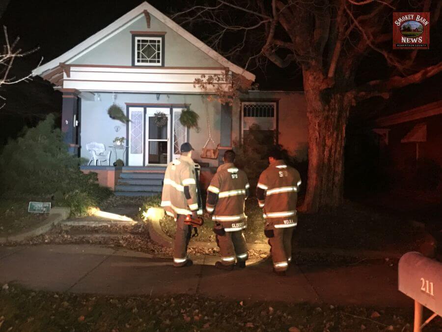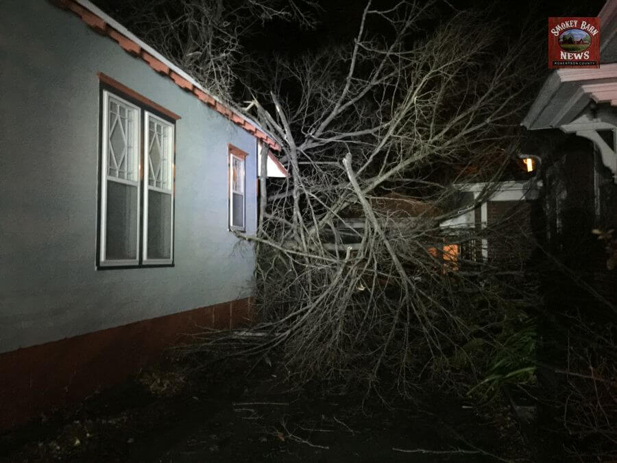 SPRINGFIELD TENNESSEE: (Smokey Barn News) – A Springfield woman will be staying in a hotel tonight after a large tree in her back yard succumbed to the high winds this evening and fell over crashing through her roof.