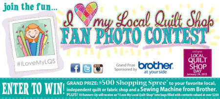 The Fabric Shop will be encouraging customers to enter the “I Love My Local Quilt Shop” fan photocontest with the Grand Prize of a $500 Shopping Spree to spend at the shop plus a PC4200PRW Project RunwayTM Limited Edition Computerized Sewing Machine from Brother International Corporation (MSRP $649). Facebook page link for contest: PhotoContest “We hope our customers will embrace the photo contest and get creative with their entries—we’d love for someone local to win!” says Donna Sandidge.