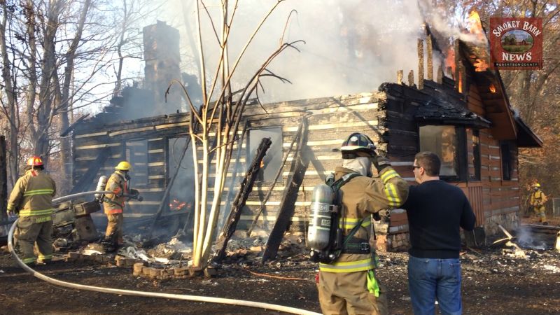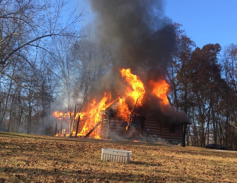 GREENBRIER TENNESSEE: (Smokey Barn News) – A log cabin on Greenbrier Cemetery Rd MAP in Greenbrier has been classified as a total loss and two people received minor injuries from a fire that started around 2p.m. Saturday afternoon.