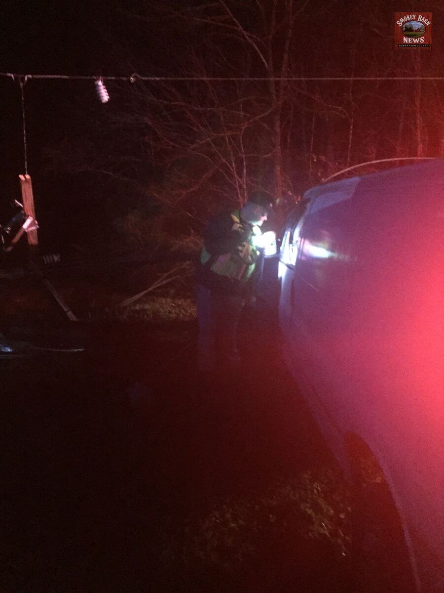UPDATE: Officials told Smokey Barn News around 9:15 p.m. Monday evening that Tom Austin HWY will likely be closed for another two hours while CEMC repairs the damage, installs a new utility pole and restores power to the neighborhood