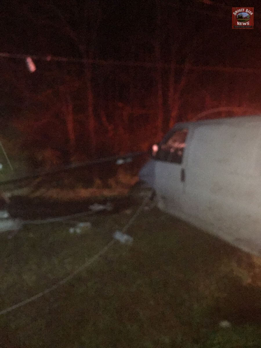 Just as first responders were preparing to leave the rollover on Kinneys Rd another call came in about another accident on Tom Austin Hwy, it involved a downed power line and a van. The call originally went out as a five car pile up but it turned out that only two vehicles were involved.