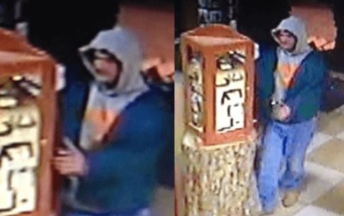Just after midnight February 28 Sunday someone broke the front glass doors of Dorris Milling Company located at 5 N. Main Street. The male subject was caught on surveillance video entering the store and making off with approximately $800.00 of Red Wing work boots and approximately $1800.00 of Case pocket knives. A grey 4 door vehicle was also seen at the location at the time of the burglary. The glass case above was also stolen.