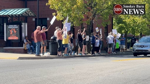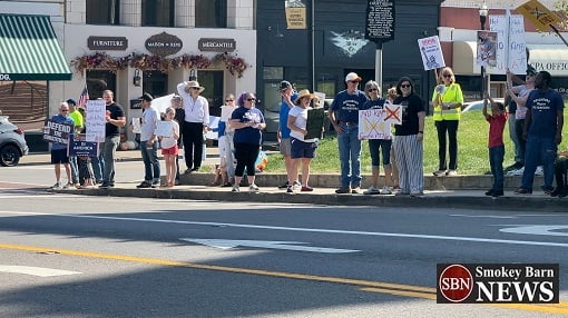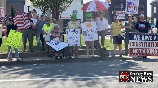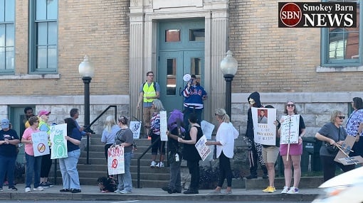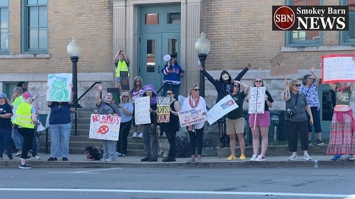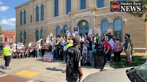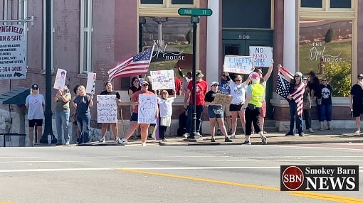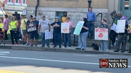 SPRINGFIELD, TENNESSEE: (Smokey Barn News) – On Saturday, about 190 protesters gathered at the Robertson County Courthouse in Springfield, Tennessee, for the “No Kings” protest. Smokey Barn News was on scene and captured the event, including an interview with the organizer. We only saw one counter-protester dressed as President Trump. The protest was otherwise peaceful.