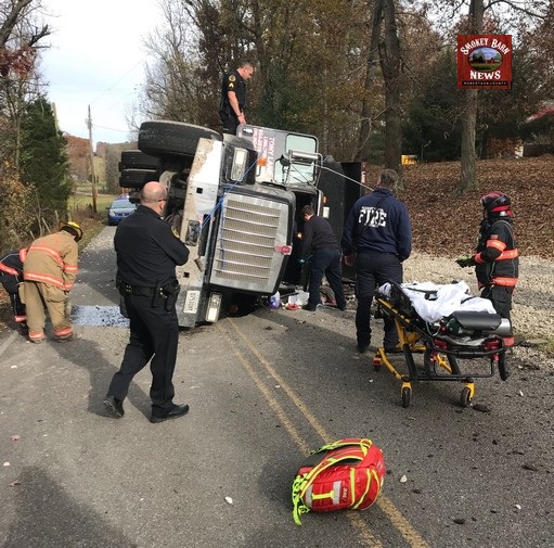 COOPERTOWN TENNESSEE: (Smokey Barn News) – The driver of a large dump truck hauling gravel was transported to an area hospital after the vehicle overturned