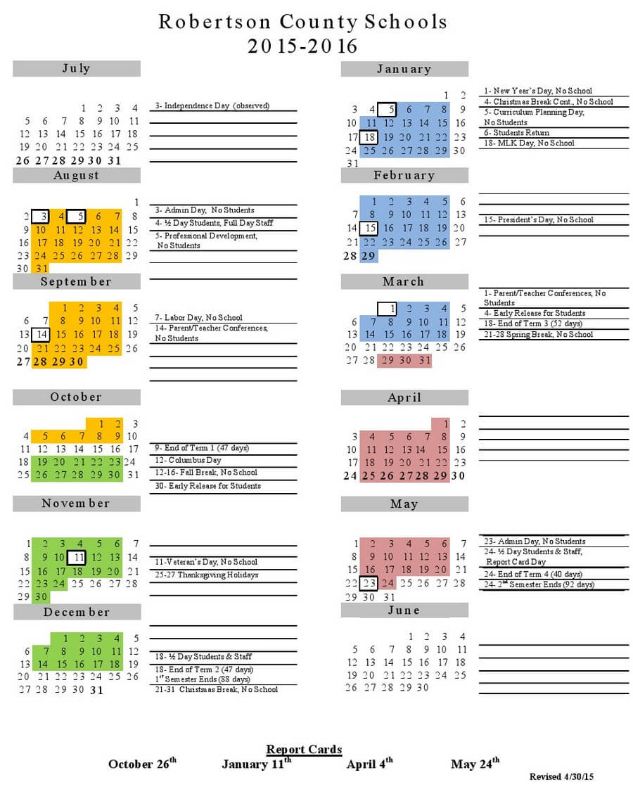 Click image to download or print School Calendar for 2015-2016