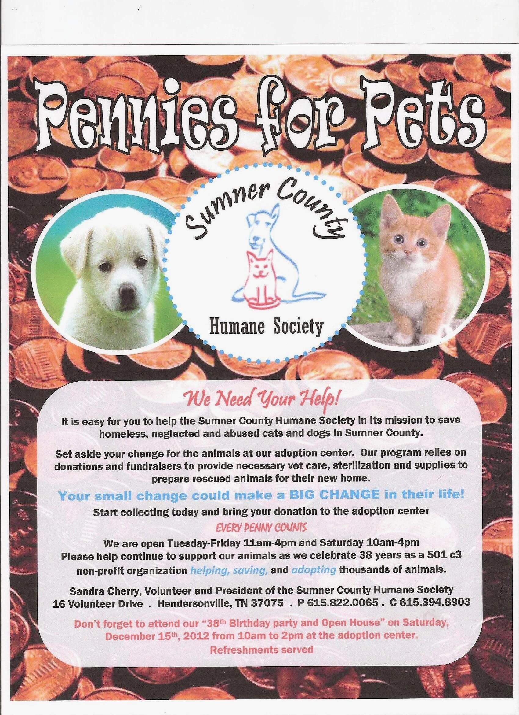Humane Society of Summer County has been serving Robertson and Sumner counties for 38 years as a non-profit 501 (c) (3).