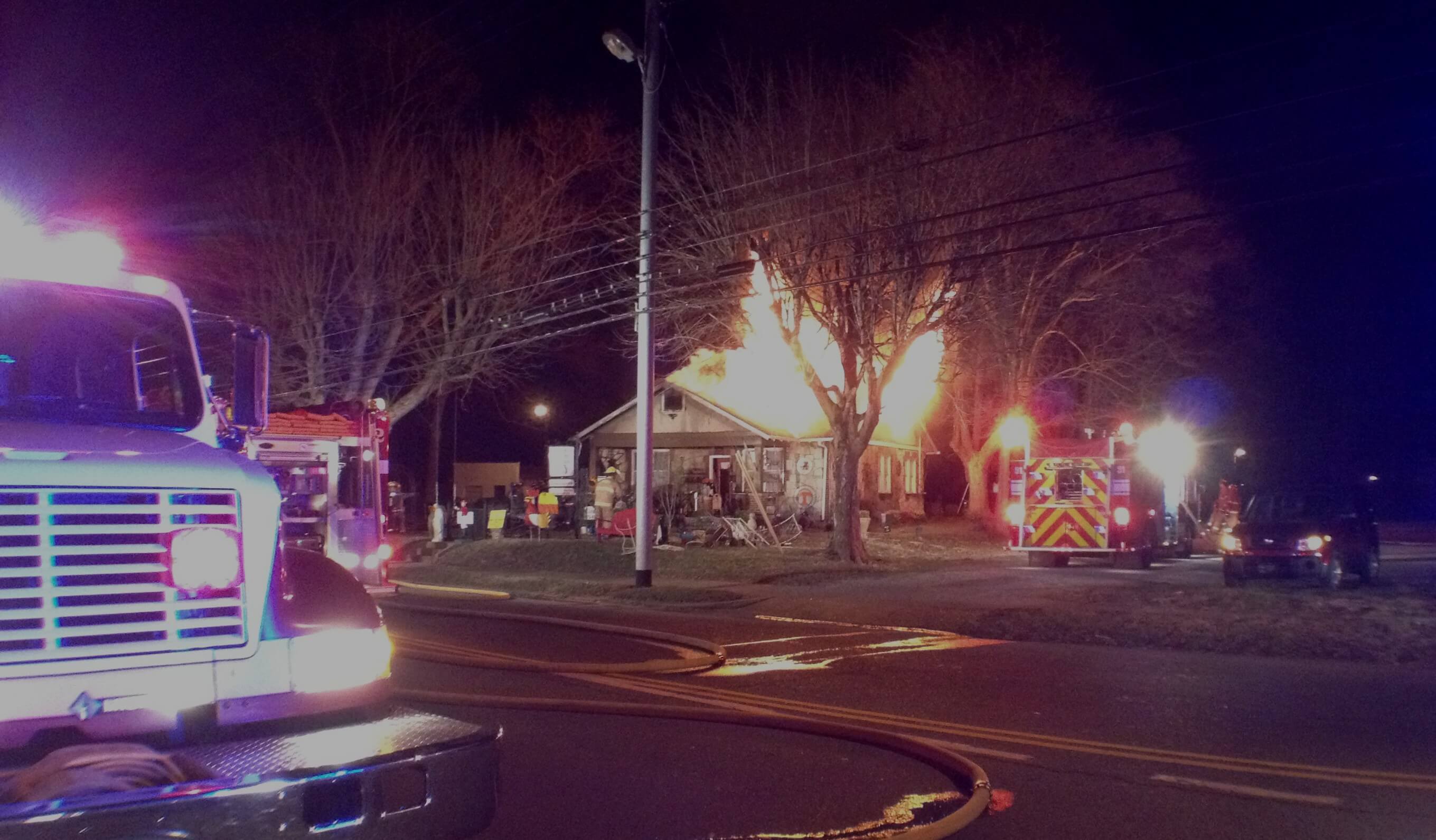 UPDATE: Video Report A man driving a dark colored pickup truck on Hwy 31 towards Hwy 76 lost control and plowed into the Stone Cottage Antique Shop at 3210 Hwy 31, White House, TN, Tn around 7:35pm. The truck hit a gas main which ignited a fire. Robertson County & Sumner County EMS along with White House Rescue responded to the call. According to witnesses at the scene the truck had struck another vehicle on 31W and then preceded on before losing control and plowing into the Stone Cottage. The driver did not survive the accident and Rescue and EMS were unable to remove the driver from the truck until the gas was turned off. Piedmont Natural Gas had to locate the gas line running through the yard to cap off the gas. Fire fighters have gotten the fire under control but White House Fire Chief Joe Palmer told Smokey the business is most likely a total loss.