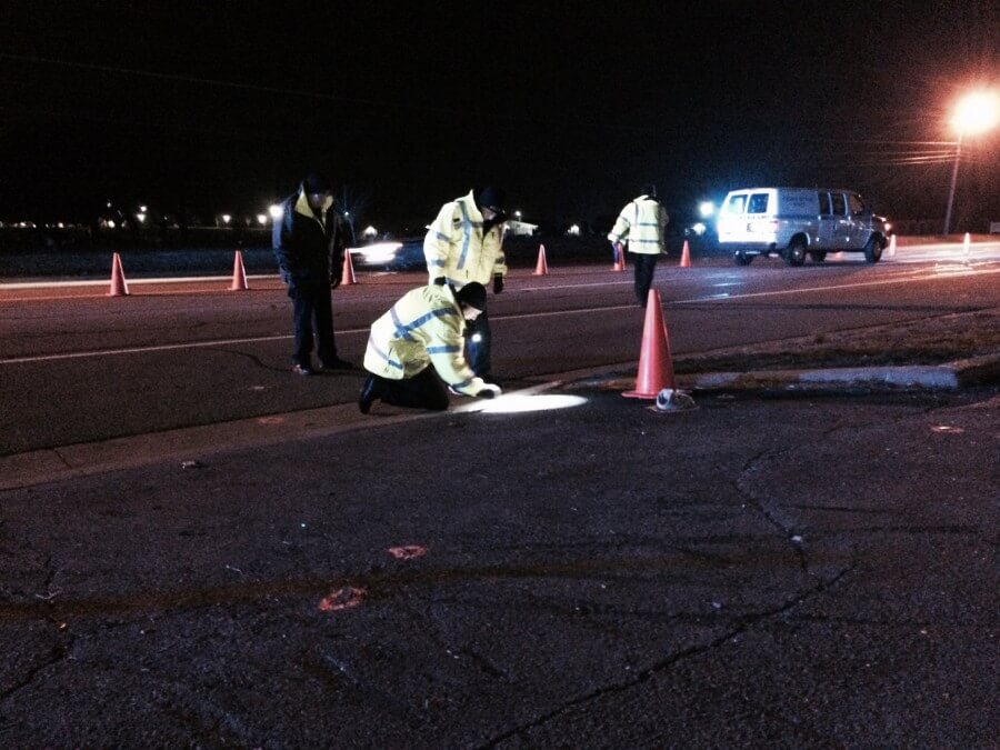 According to other witnesses, the vehicle that left the scene is described to be a white full size Chevrolet pickup truck or a white extended cab mid-90’s model S-10 with a sliding rear window and damage to the front passenger side. There should be damage to the fender or hood area as well as a missing blinker assembly.