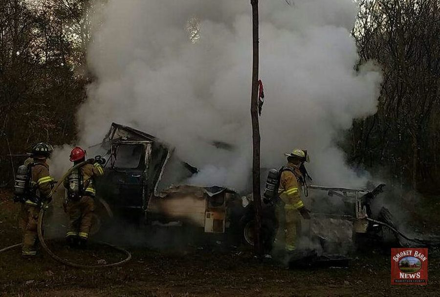 Ridgetop Police caught up with Searcy on Smiley Hollow Road at Betts Road. Deputy Mark Strobel of the Robertson County Sheriff’s Office arrived shortly after. In a report obtained by Smokey Barn News, Deputy Strobel indicates that Searcy admitted to setting fire to the RV and Searcy was then placed under arrest for Arson.