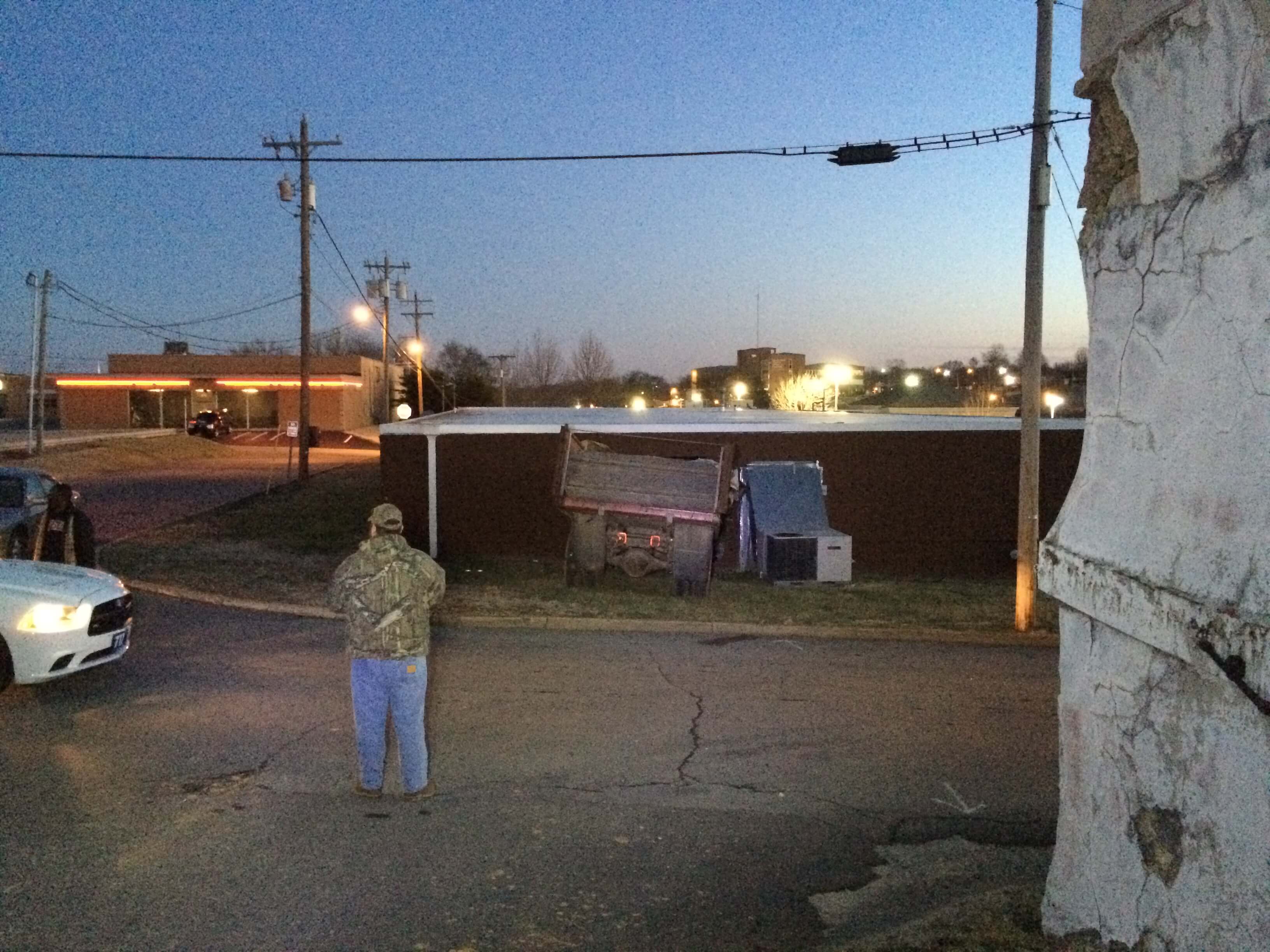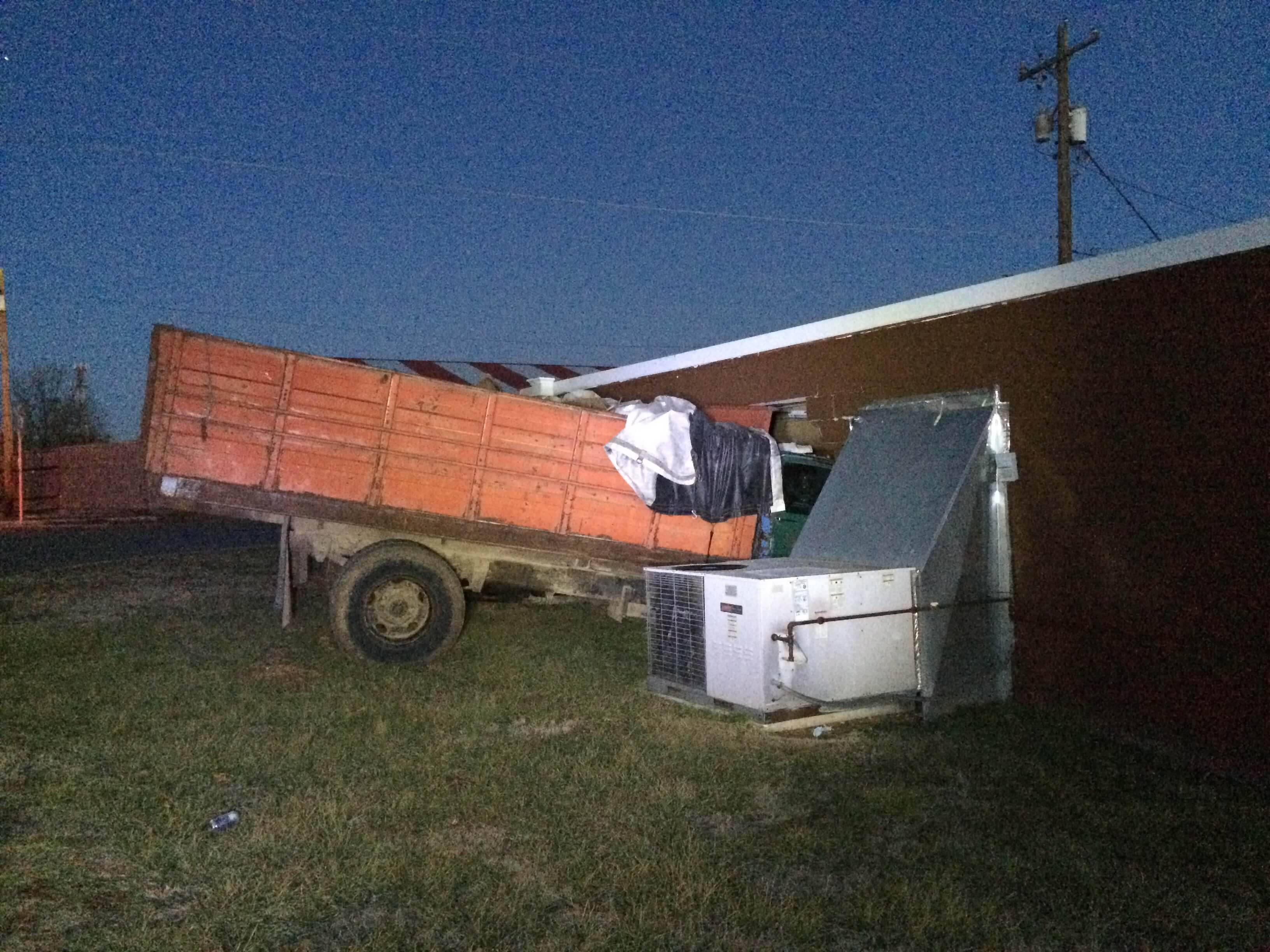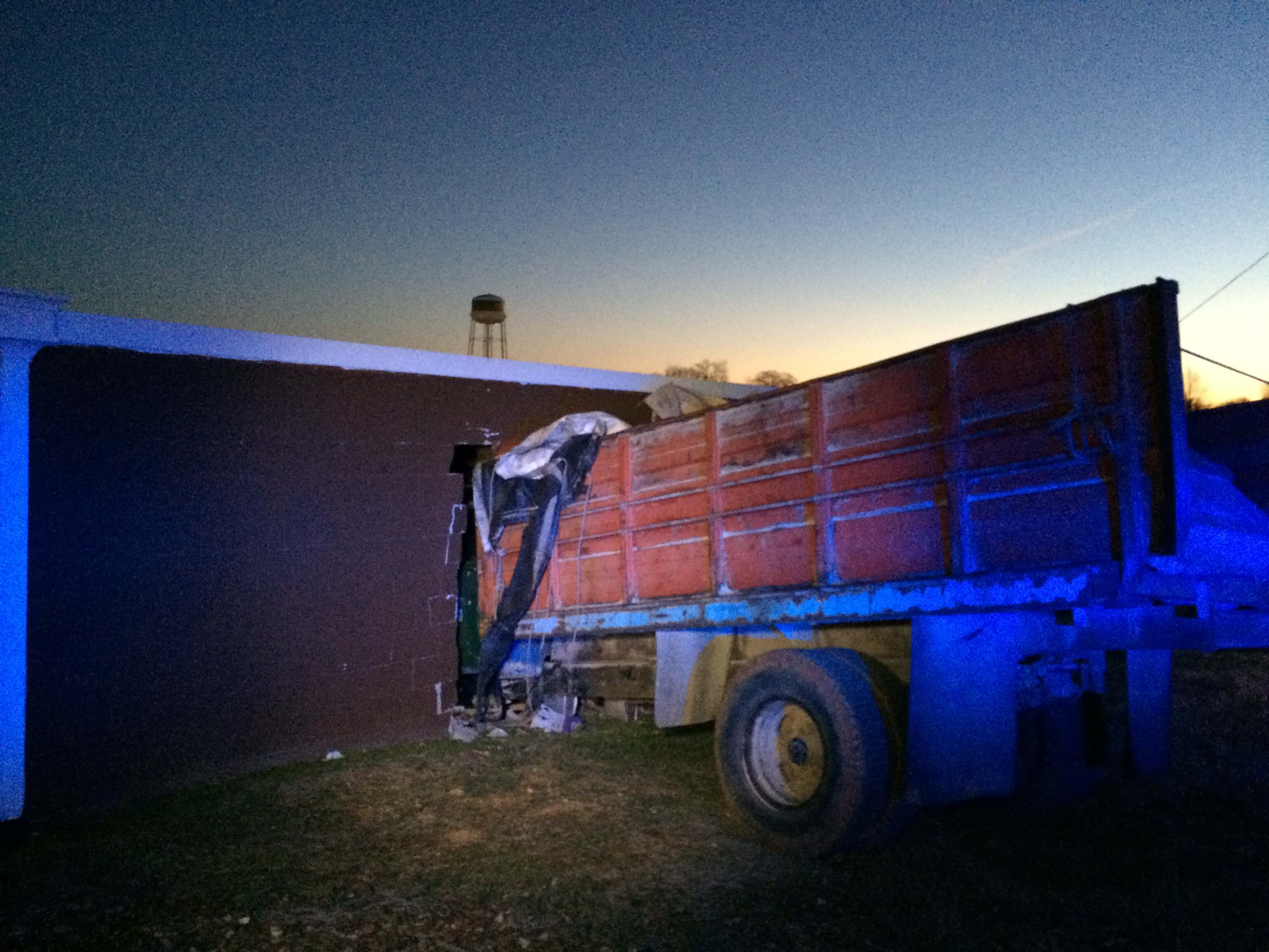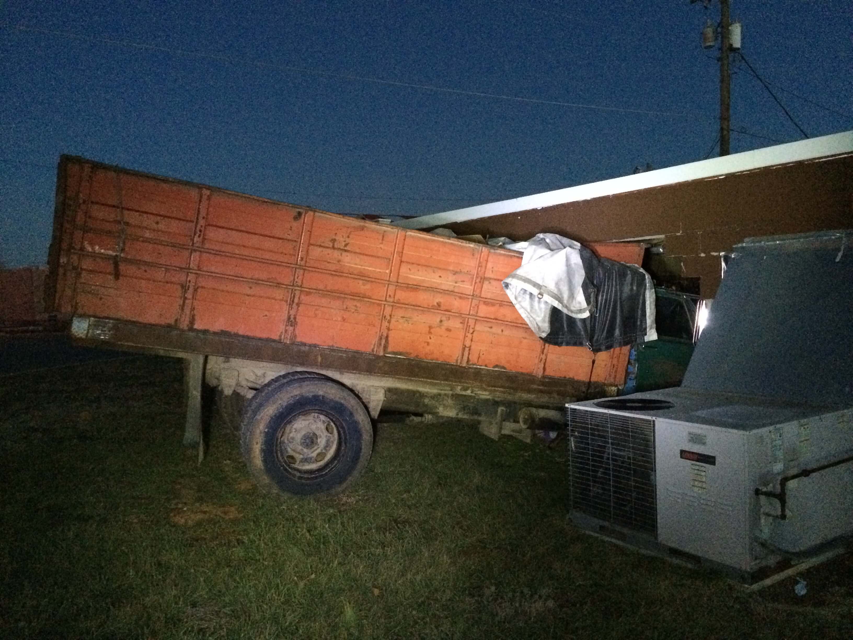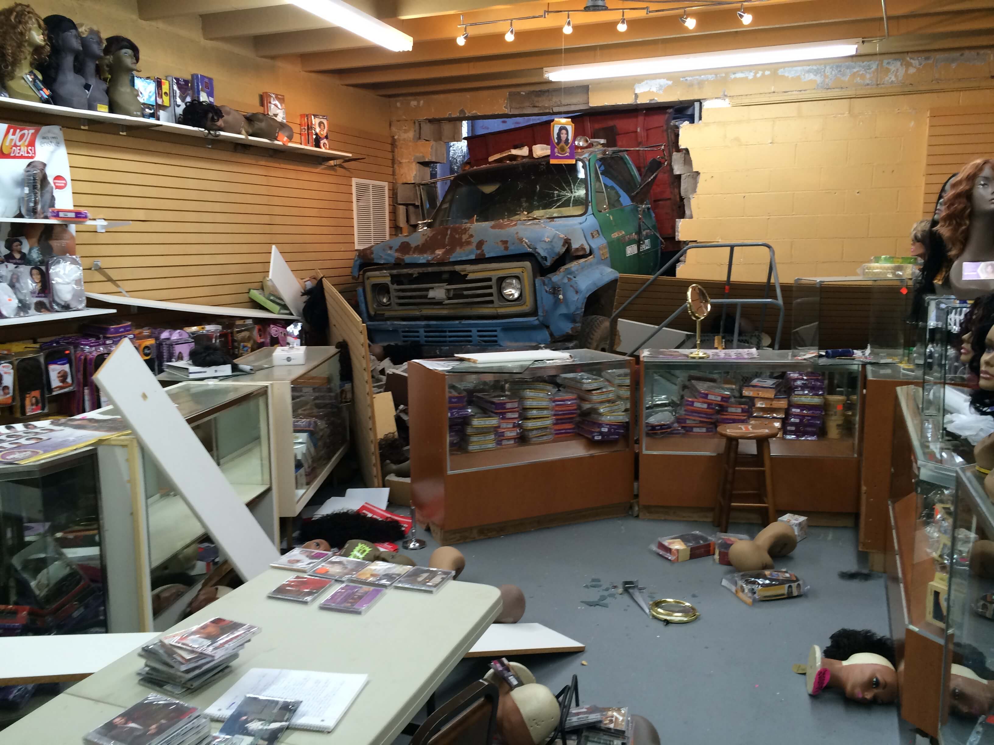Police in Springfield are calling it possible vandalism. Sometime overnight (no one knows for sure exactly what time) a large industrial truck somehow broke lose from the parking lot of Tennessee Wood Crafters, sailed down a steep embankment and impaled itself into the back of Total Gospel Hair and Beauty Supply.