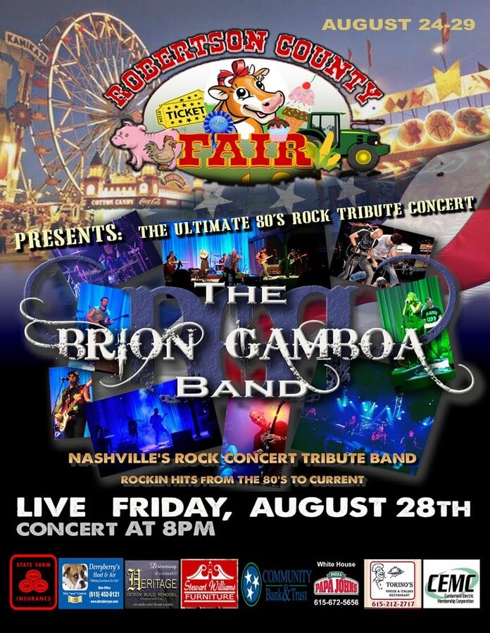 This year the fair has invited the return performance of the national 80’s rock tribute musical act “The BRION GAMBOA Band” on Friday, August 28th at 8pm. They will perform a 2 hour concert featuring radio rock hits from the 80’s.
