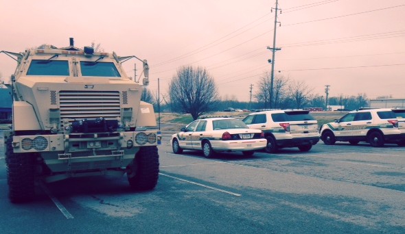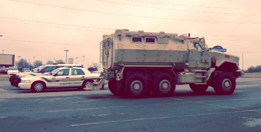 Smokey first became aware of the new “MRAP” yesterday when a local resident encountered the vehicle at a restaurant in Springfield and took a few photos. Some worry that police are becoming over militarized but many police agencies across the country are acquiring this kind of equipment at bargain basement prices. You may remember a similar piece of equipment was used by White House police in a standoff last December. (Video and full story)