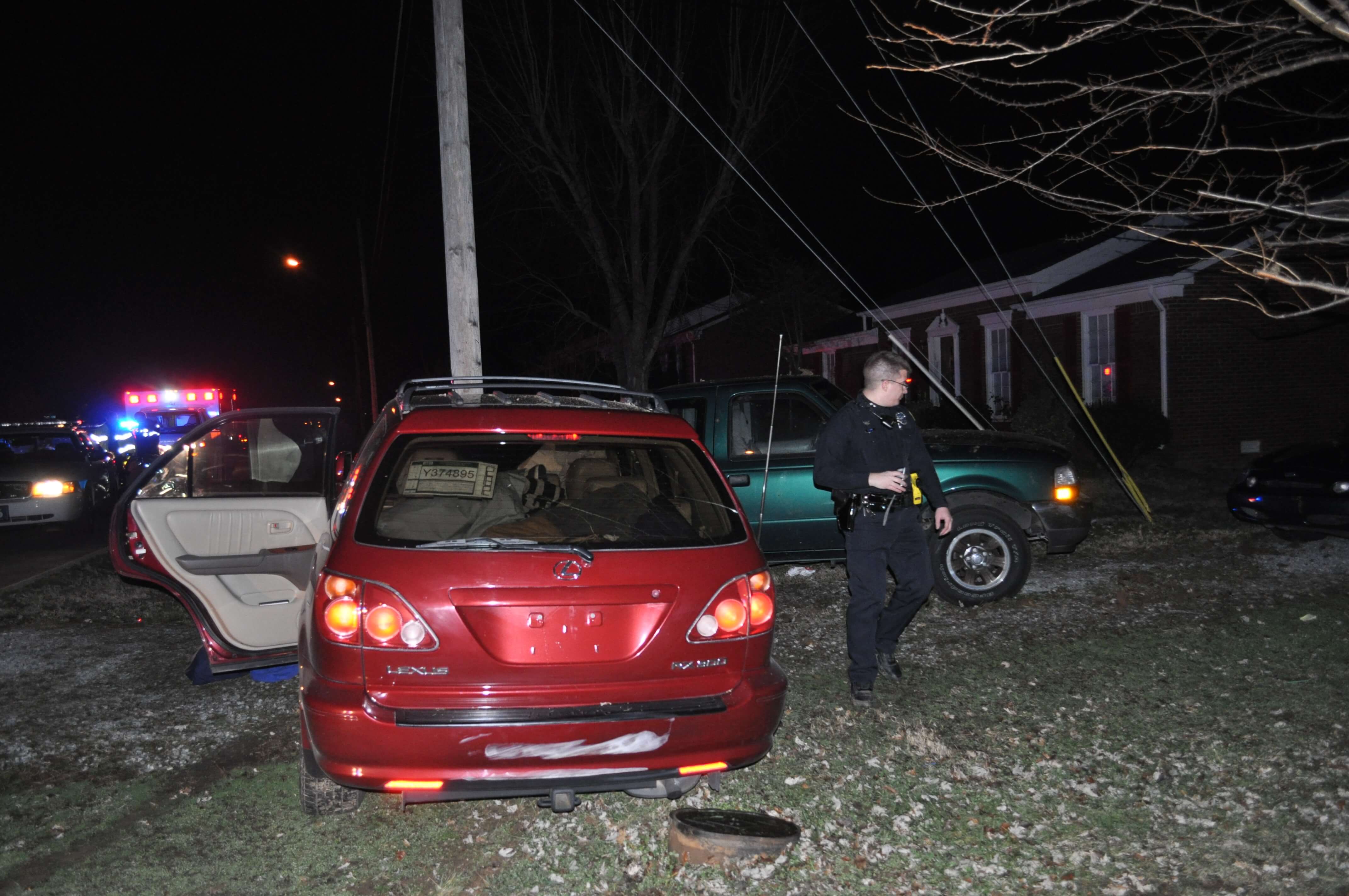 males in a maroon Lexus with temporary tags. Another wild stroke of luck was that the Lexus had a headlight out which helped the car stand out even more, but as we understand it that was not part of the description of the vehicle.Attempts by the Springfield PD to get the teens to pull over were ignored. A chase ensued for a short time. At one point during the chase the teen seemed to have gotten lost and ended up in the subdivision around Westwind Dr and Carls Place in Springfield or more generally, near 5th and Central. (Map to exact location of wreck) The speed that the teens were traveling made the sharp curve on Westwind Dr an impossibility and the Lexus veered off the road and struck a pickup truck sandwiching it against a utility pole. Both airbags deployed but the teens
