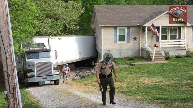 GREENBRIER TENNESSEE: (Smokey Barn News) – The Nicholson family in Greenbrier started their day off with a tractor trailer in their bathroom. Lonnie Nicholson told Smokey Barn News that she was in the bathroom when the house started to shake, she thought it was an earthquake.