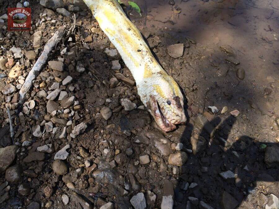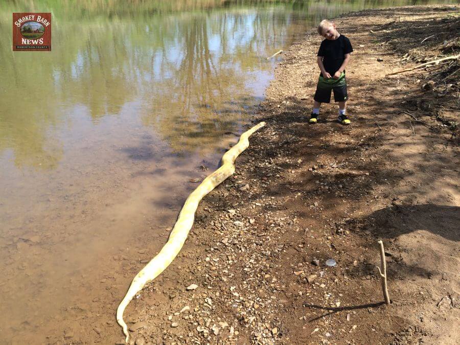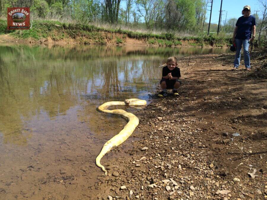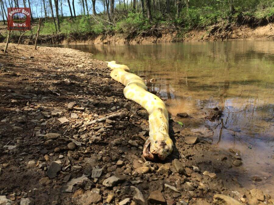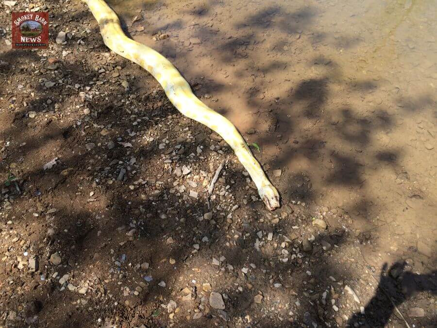 Moore said the snake had become ill about three months ago and finally died in his arms on Easter Sunday. Moore said he released the snake in the creek because he took the snake there often. “I didn’t mean to freak everybody out, in hind sight I guess I should have buried it, Moore said.”