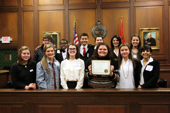 The High School Mock Trial Competition is an annual event sponsored by the Tennessee Bar Association/Young Lawyers Division. Students from across the state compete as they assume the roles of attorneys and witnesses in a model case, which may concern either a civil or criminal matter. Student prosecution and defense teams battle to win a favorable a judgment by staging a virtual trial that includes opening and closing statements, direct and cross examinations of student witnesses, and the introduction and use of exhibits. Area judges and lawyers act as the jury and award points for the testimony of student witnesses and for the legal skills and courtroom demeanor of student attorneys.