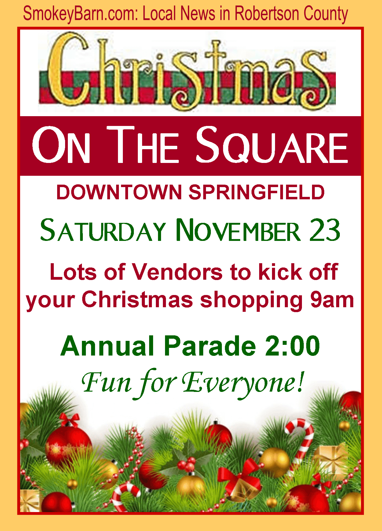 Vendors line the courtyard square Saturday November 23rd around 9am, so bring your Christmas list!…The parade will start at 10th Ave continuing down North Main Street, turning left onto 5th Ave ending at the Springfield Middle School. Parade line up will begin at 12:30 on 10th Ave, each parade participant will have a designated parking lot to assemble. Parade begins at 2:00pm!