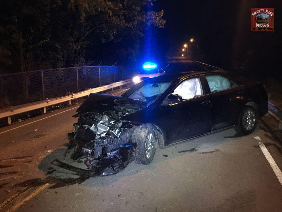 SPRINGFIELD TENNESSEE (Smokey Barn News) A Springfield man escaped serious injury after crashing into a guard rail head-on Friday evening.