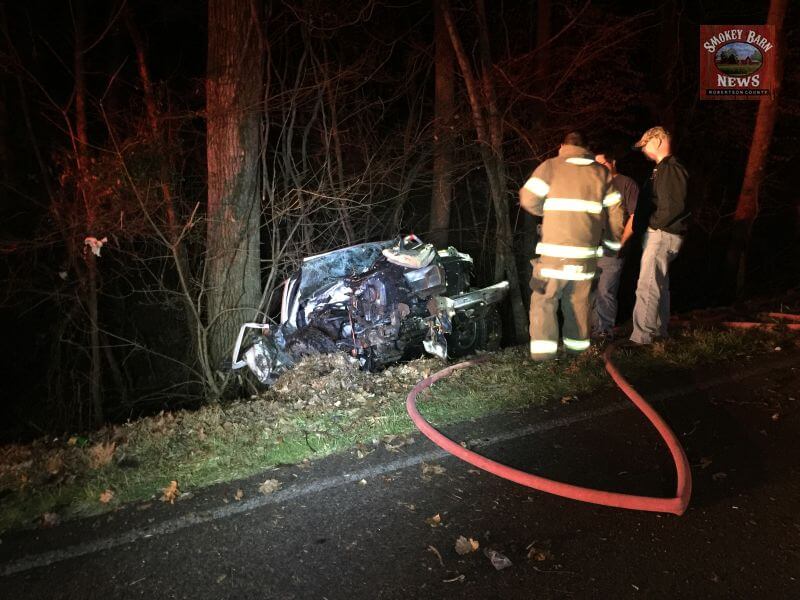 The THP released the following preliminary findings on the crash. “The vehicle was traveling East on Kinneys Road. The vehicle went off the right side of the roadway and struck a tree then burst into flames. The impact was so severe that the hood was found off the road”